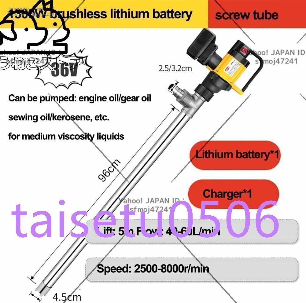 注: このオイルバレルポンプは中粘度および高粘度の液体に適していることに注意してください。液体により適したパイプ材質が異なりますので、ご要望に応じてご購入ください。アルミチューブ:一般の非腐食性液体に適していますステンレス鋼パイプ: 低腐食性液体に適していますオールステンレスパイプ:中~高腐食性液体に適しています。全鋼製高温管:120℃までRPPチューブ:低腐食性から中腐食性の化学液体に適しています。PVDF パイプ: 中?高酸性およびアルカリ性の化学液体に適しています。強酸テトラフルオロチューブ:98%強酸、強アルカリ、強腐食性薬液に適しています。スクリューチューブ:中粘度の液体に適しています仕様速度: 12000r/分電力: 1000ワットリフト:7M流量:10-130I/分重量: 5kgサイズ: 103*22*15cm包装内容明細書1×オイルトランスファーポンプ1×チューブ1×ホース1×バッテリー1×充電器