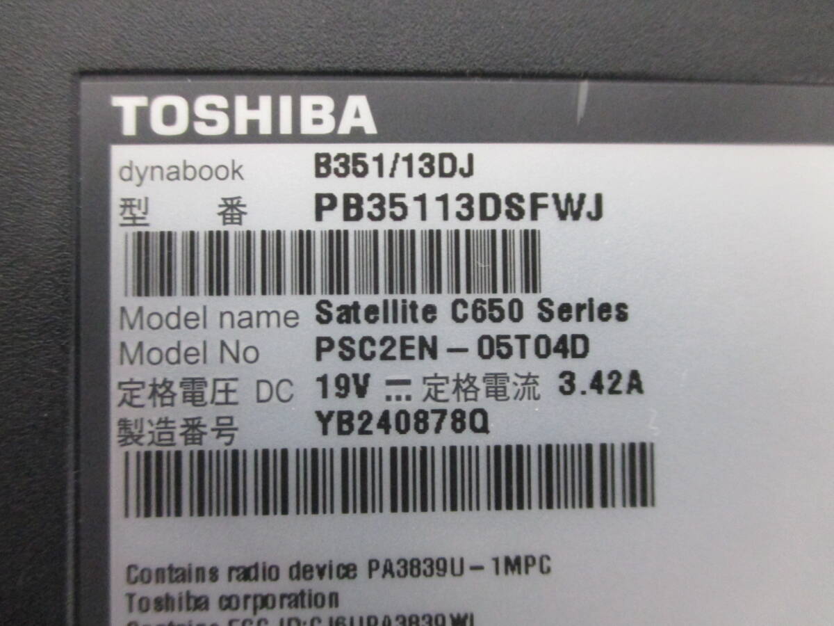 本体( TOSHIBA dynabook B351/13DJ(PB35113DSFWJ)HDDレス )出品です。