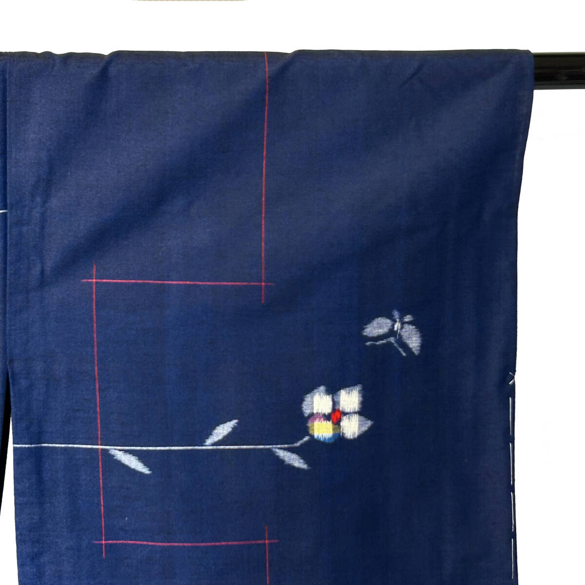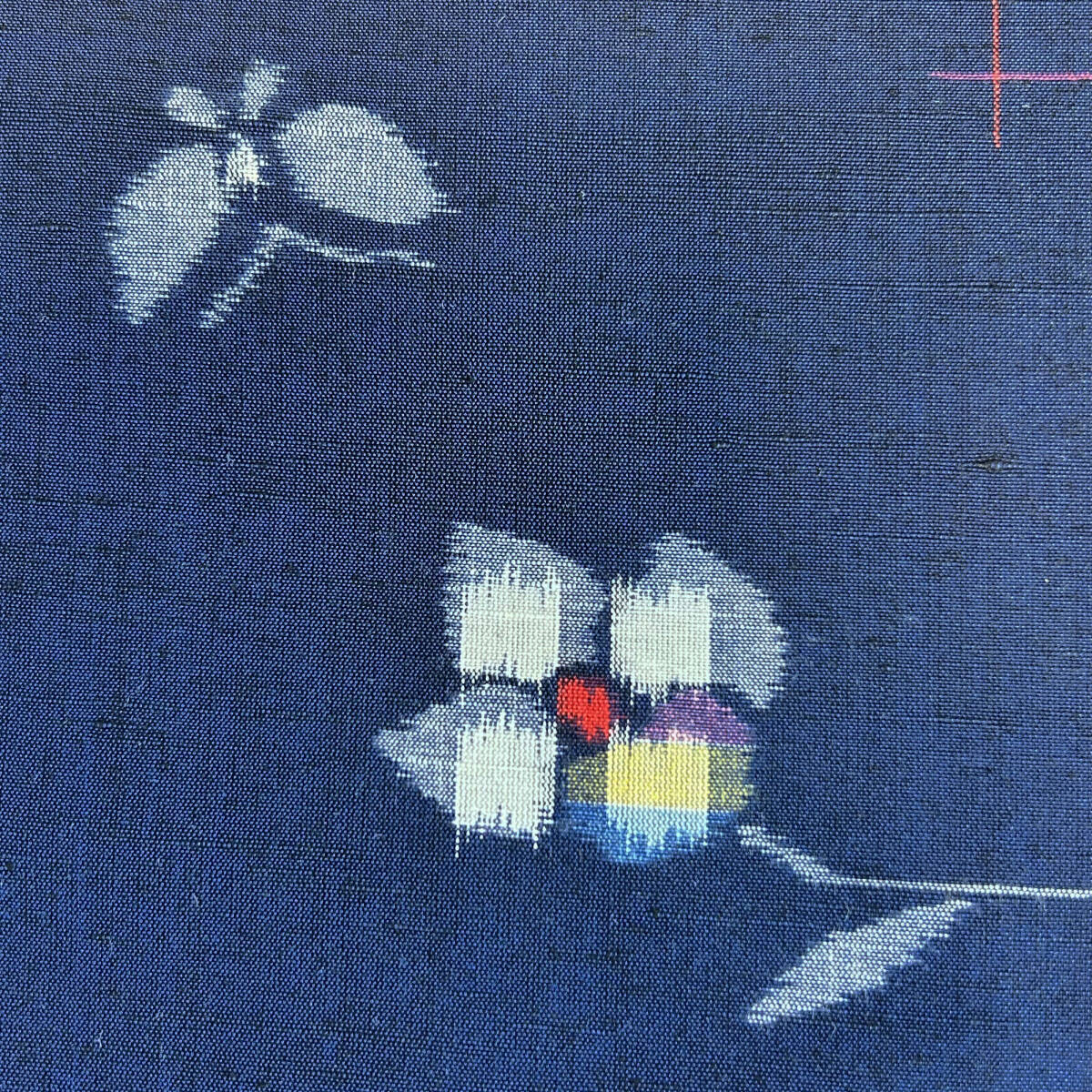 濃紺の紬地に、花と蝶の模様が織られたとても可愛いお着物です。これからの季節にお召し頂ける単衣(夏用)のお着物です。どうぞこの機会にご検討下さい!