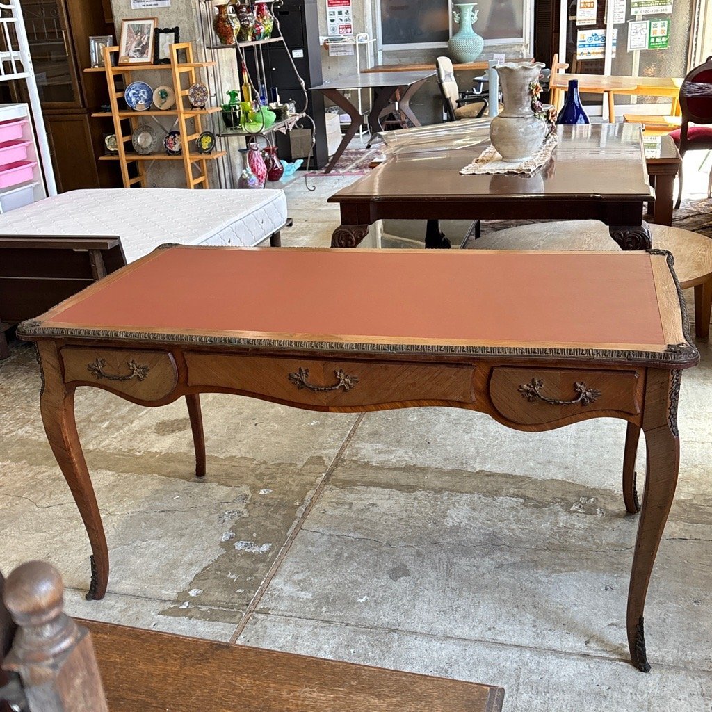 - サイズ - ◇ 約 W 145 × D 75 × H 76.5 cm - 状態 - ◇ スレ、キズ、ハガレなどございます。 ◇ 引き出し片側は飾りとなります。 ◇ 向かって右側の引き出しが引きづらいです。 ◇ 天板の別素材部分、傷つかないように 透明のマットが引いてありますので 目立つヨゴレ、キズはございません。 ※ 店頭販売もしている為、キズなど増える場合がございます。 - 販売店 - ◇ こちらの商品は下記店舗にて販売しております。 家具 別館 横浜市保土ヶ谷区峰岡町1-20-4 (TEL) 045-337-1256 (営業時間) 10:00 ~ 19:00 ※ 販売店が変わる場合がございます。 ご来店前に事前にお問い合わせ下さい。 - 発送 - ◇ アートセッティングデリバリー おまかせ家財便 D ランク (神奈川県から発送) 【https://form.008008.jp/mitumori/PKZI0100Action_doInit.action】 ※ 沖縄への配送は承れません。 ※ 北海道への発送は、道東エリアの送料になります。 ※ 一部の地域、離島などお届けが出来ない地域がございます。 ご確認の上、ご検討下さいませ。 - 直接引取について - ◇ ご来店に関しまして、お客様のご都合の宜しい 日時・時間帯でご予約いただいております。 ※ ご予約されず来店された場合、受渡しは 対応が出来ませんので事前に必ずお知らせくださいませ。 ◇ また、お車でご来店される場合は、 車種を事前にご連絡頂けますようお願い致します。 ◇ 大型の商品は、お車に入らない場合もございますので 事前に必ず積載可能かご確認をお願い致します。 ◇ お品物は梱包などしておりませんので、 養生・ロープなどお客様にてご用意をお願い致します。