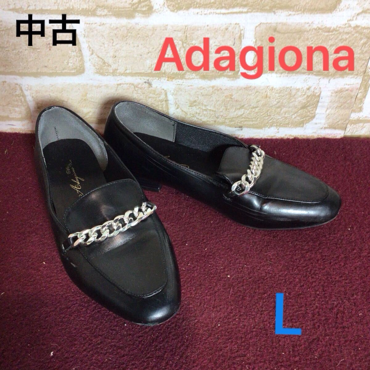 【売り切り!送料無料!】A-272 Adagiona!パンプス!黒!L!スタイリッシュ! ローヒール!歩きやすい!中古!