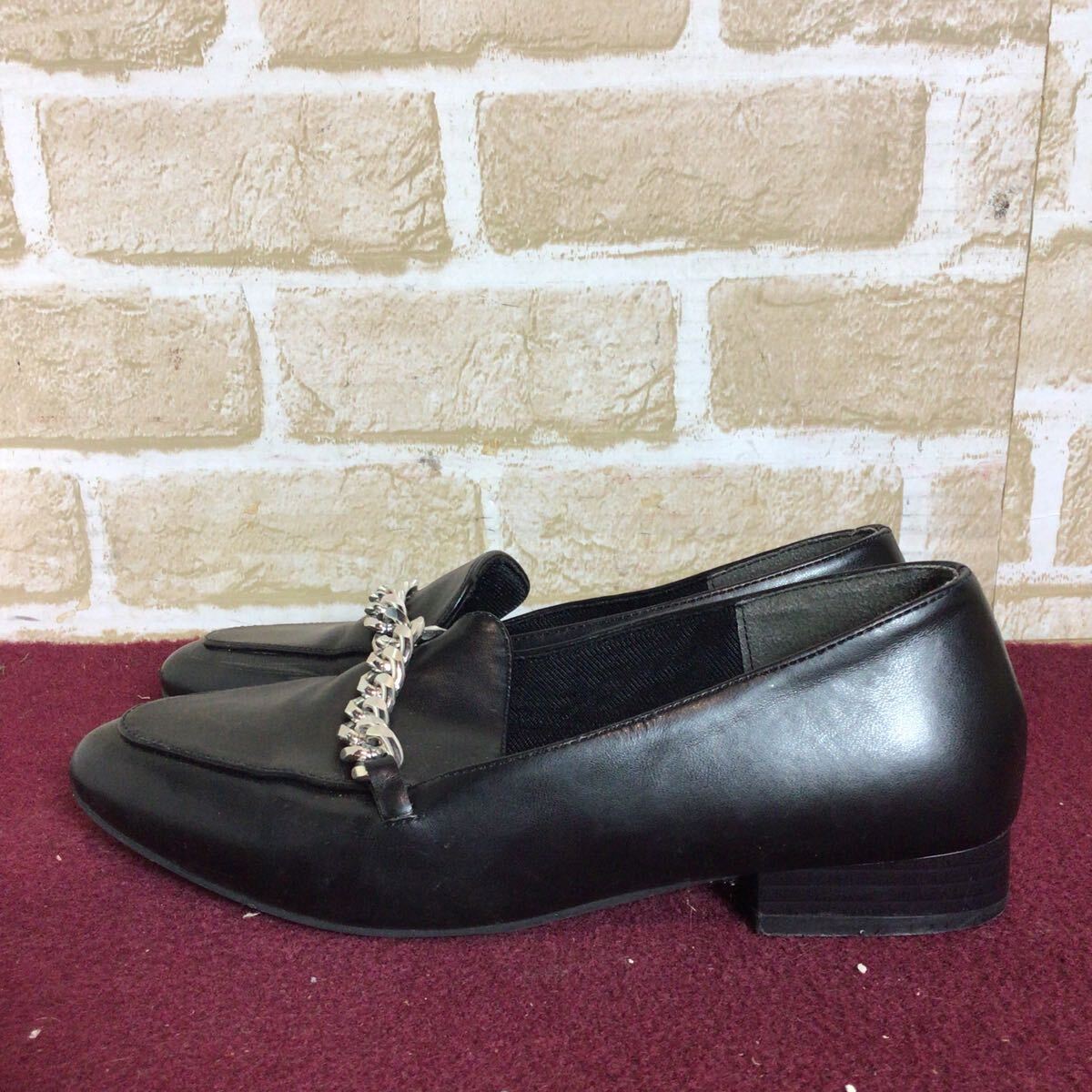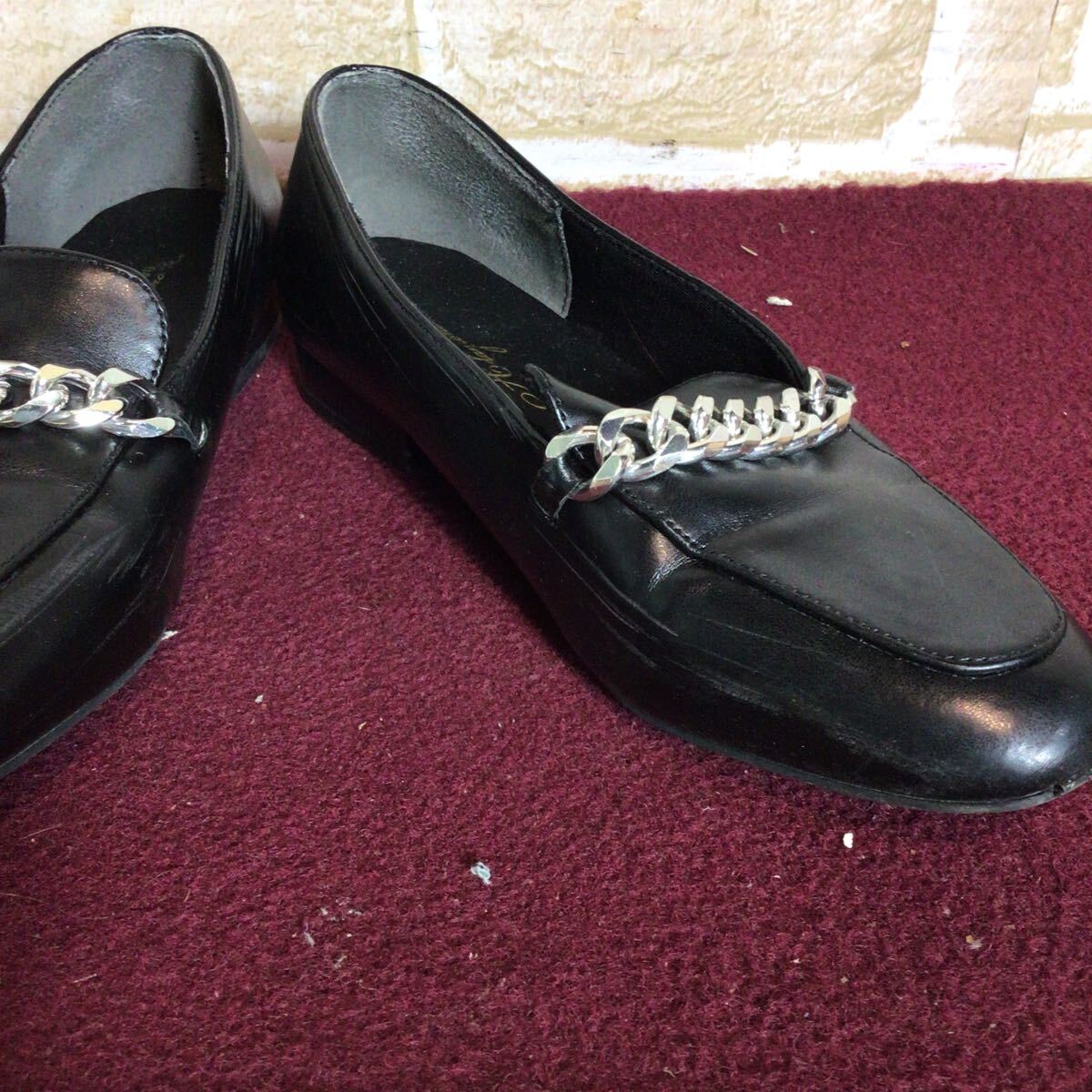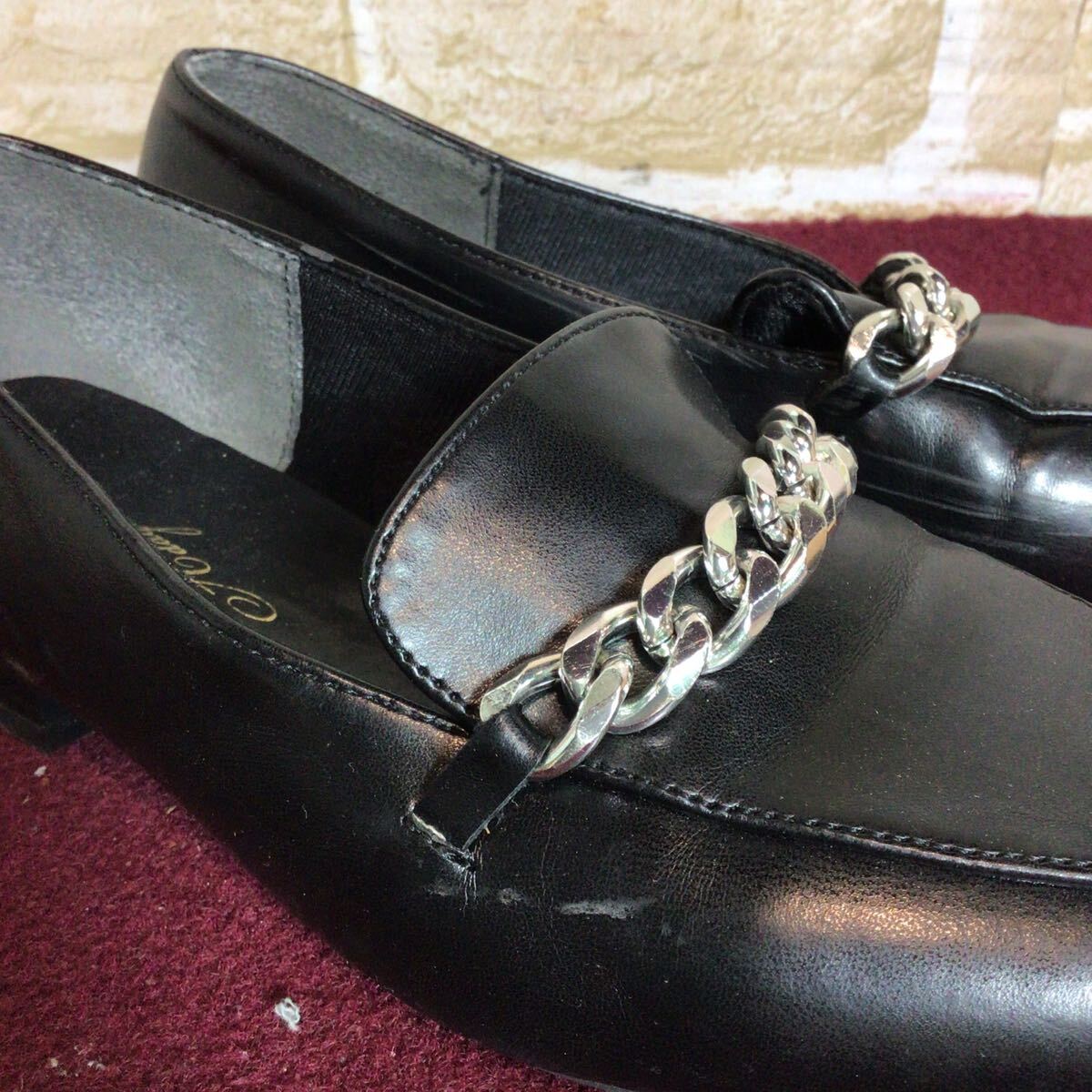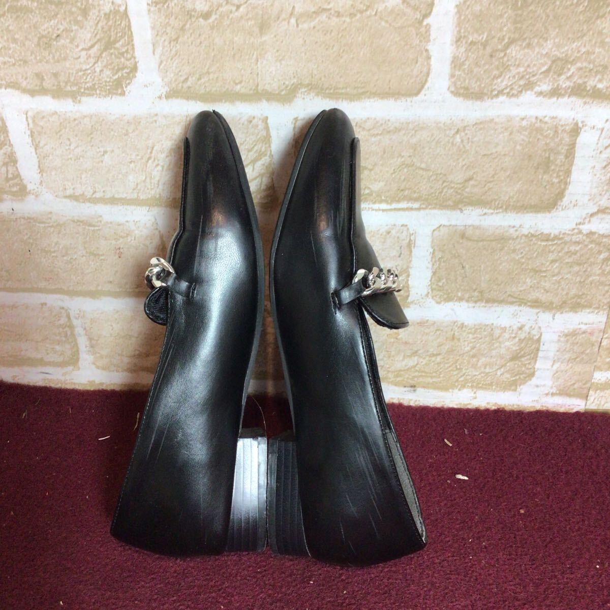 甲の部分にチェーンがついたデザインのかっこいい印象のパンプスです。