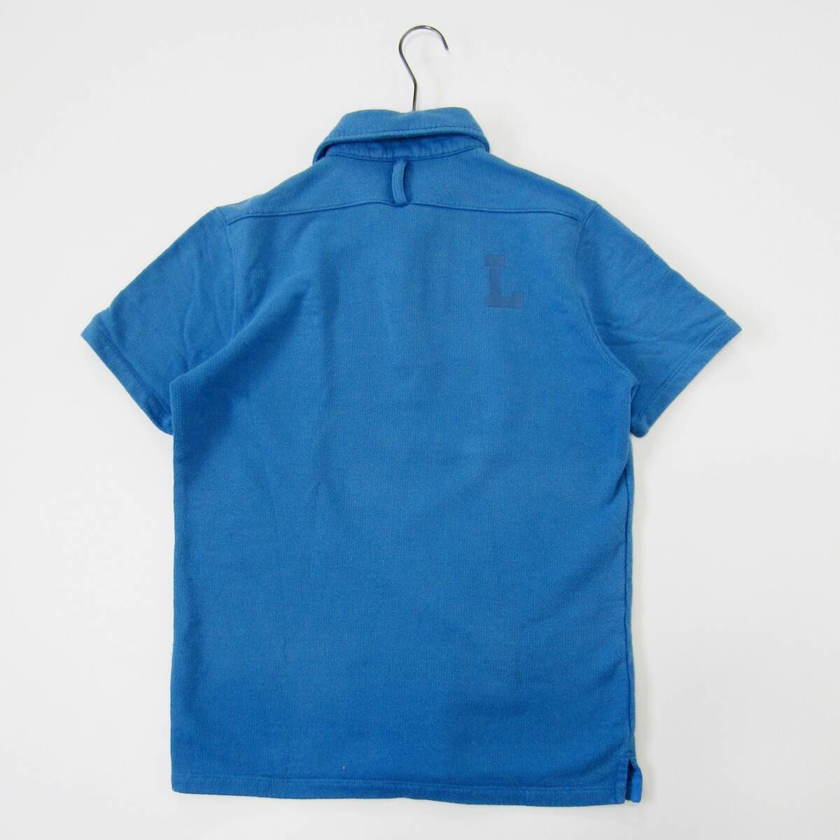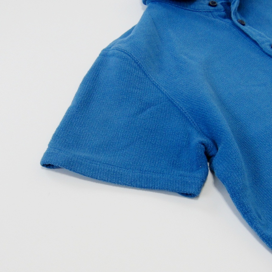 青色のポロシャツ、ロゴ付きでスタイリッシュなデザイン。