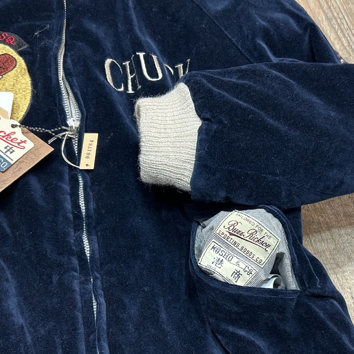 バズリクソンズ 港商 スペシャル 別珍スカジャン チトセジャパン アメカジ ミリタリー軍物 BR15536 128)ネイビー