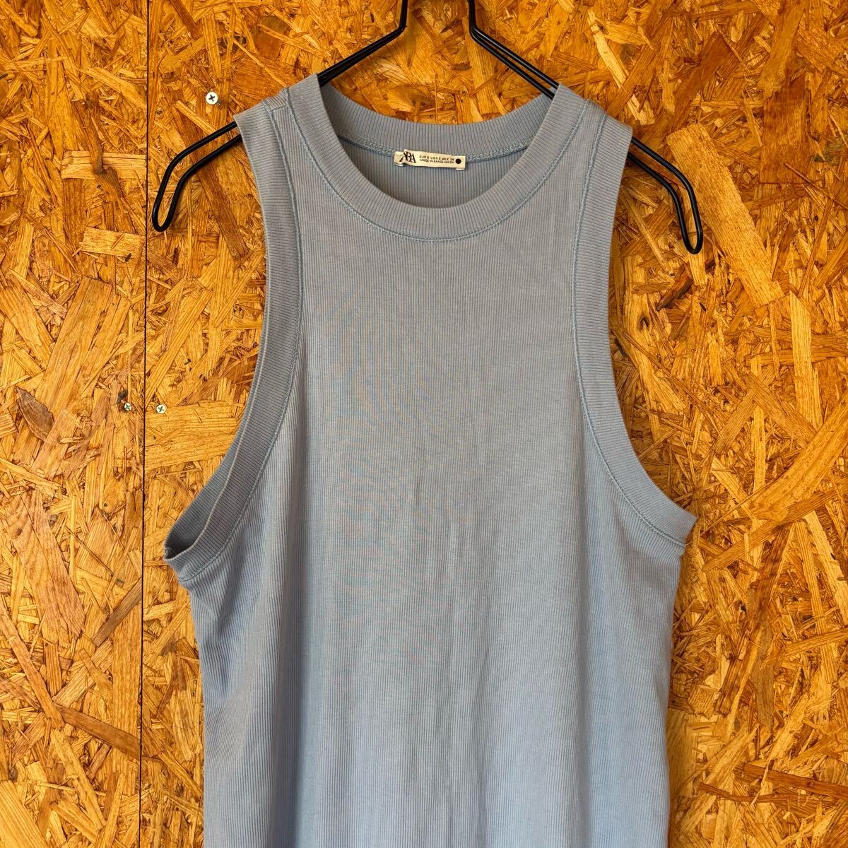 ZARA ノースリーブワンピース リブワンピース ロングワンピース 水色 4272