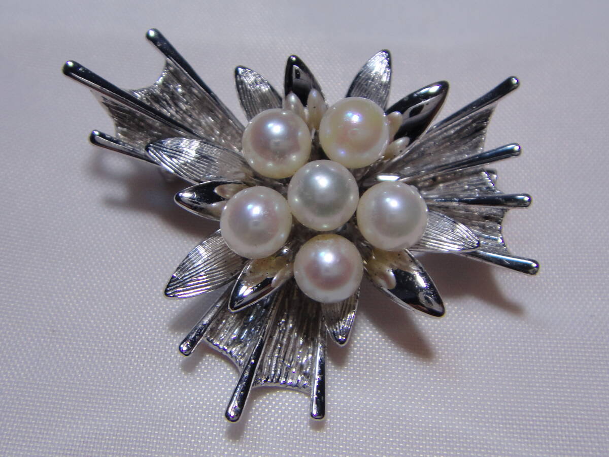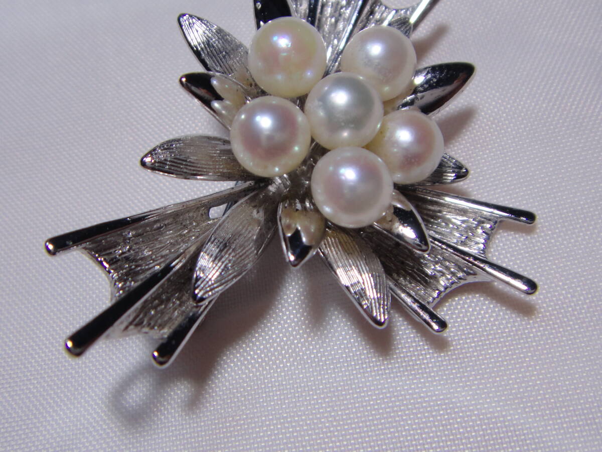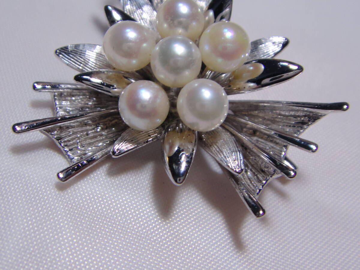 アコヤ真珠 本真珠 本パール ブローチ ネックレストップ 兼用 ツヤテリ良 SILVER刻印 ヴィンテージ D288
