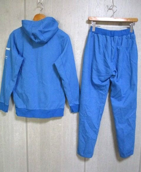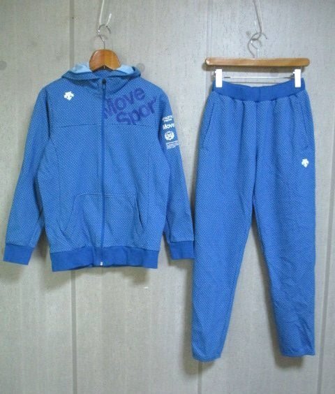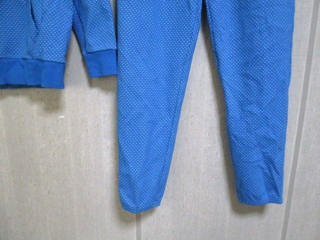 上着はジップパーカーになります。パンツのウエストはゴムで約60㎝から多少伸びます。サイズはMです。詳しい色合いは分かりませんがカラーは濃い目の水色系か青系のように思います。素材やデザインなど画像でご確認お願い致します。 USEDです。マダマダ着て頂けますが多少の使用感はあります。特に目立つ汚れや傷などは見当たりませんがusedのため多少の汚れや傷などご了承ください。 正規品です。 used品は汚れやダメージの見落としがある事もありますのでご理解頂ける方でお願い致します。 |