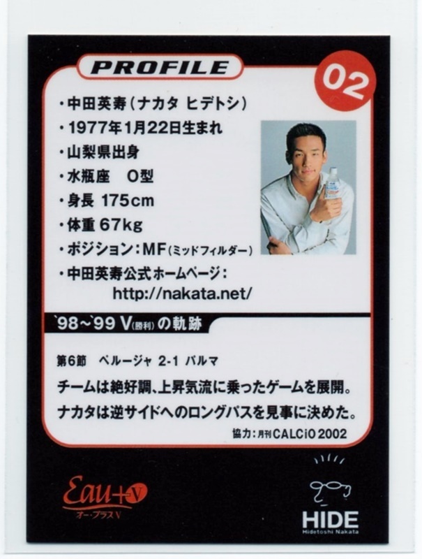 中田英寿【 アサヒ飲料 オー・プラス V (おまけカード) 】トレカ/レギュラーカード(02)