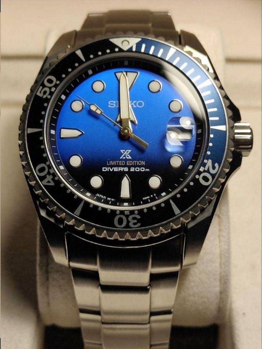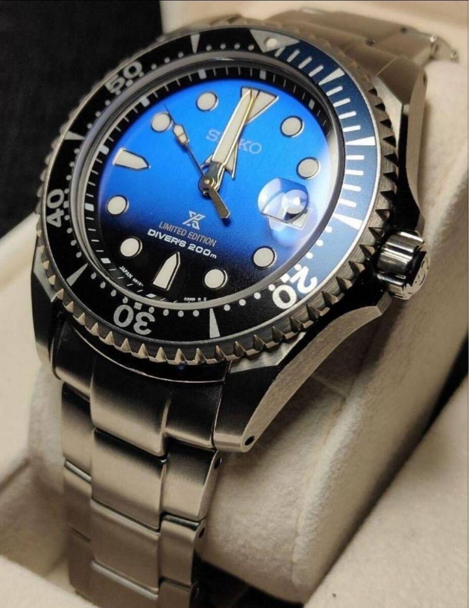 タイ限定のジンベエ (ZIMBE)、チタン製のSHOGUNをベースに、ディープブルーグラデーションが施されたダイアルとサファイアガラス、金メッキされた針などを装備した特別品です。
