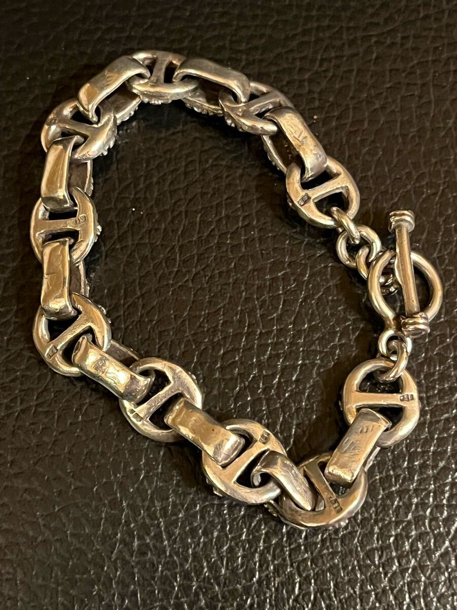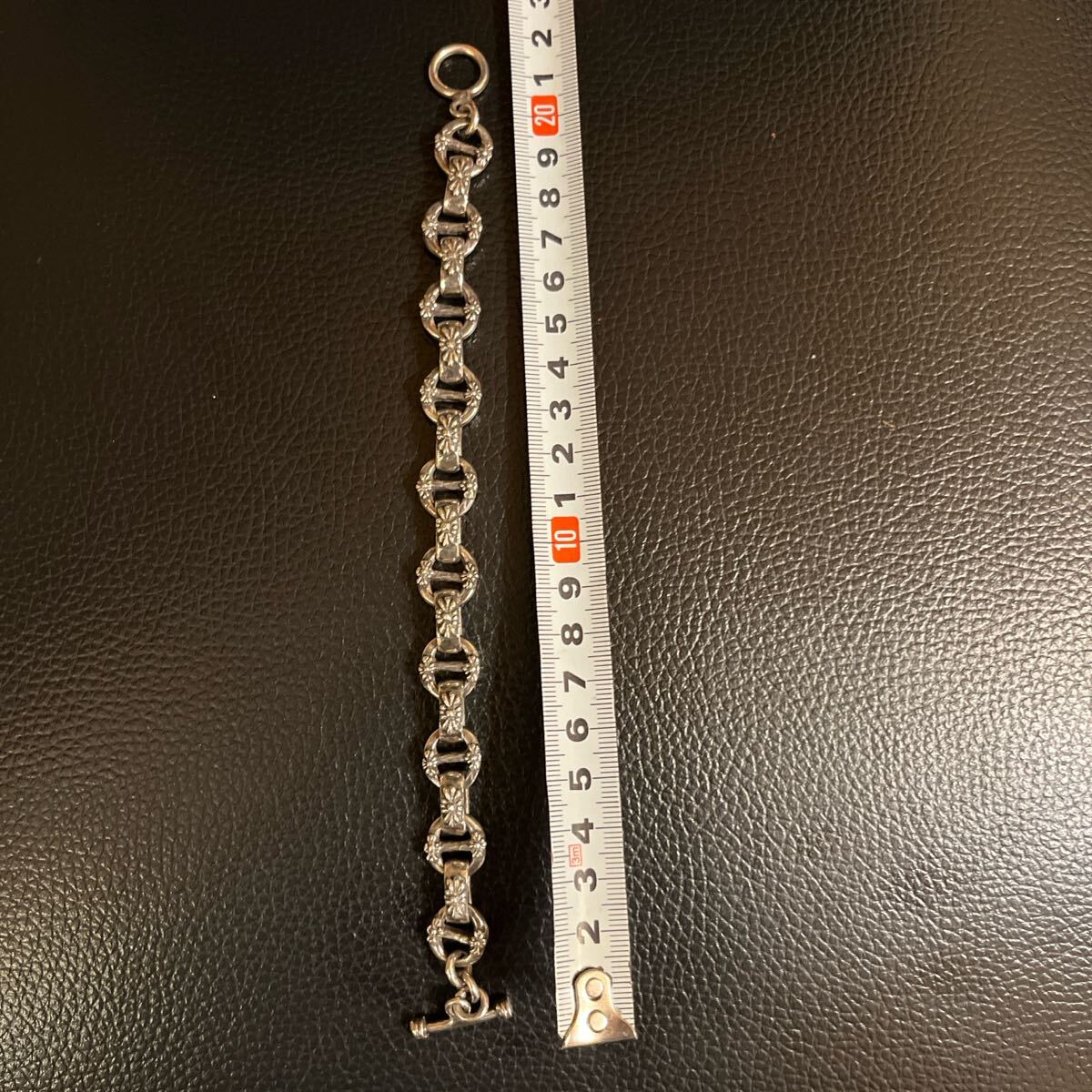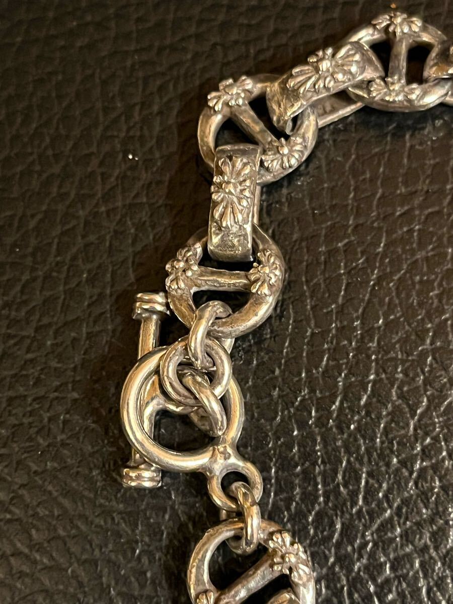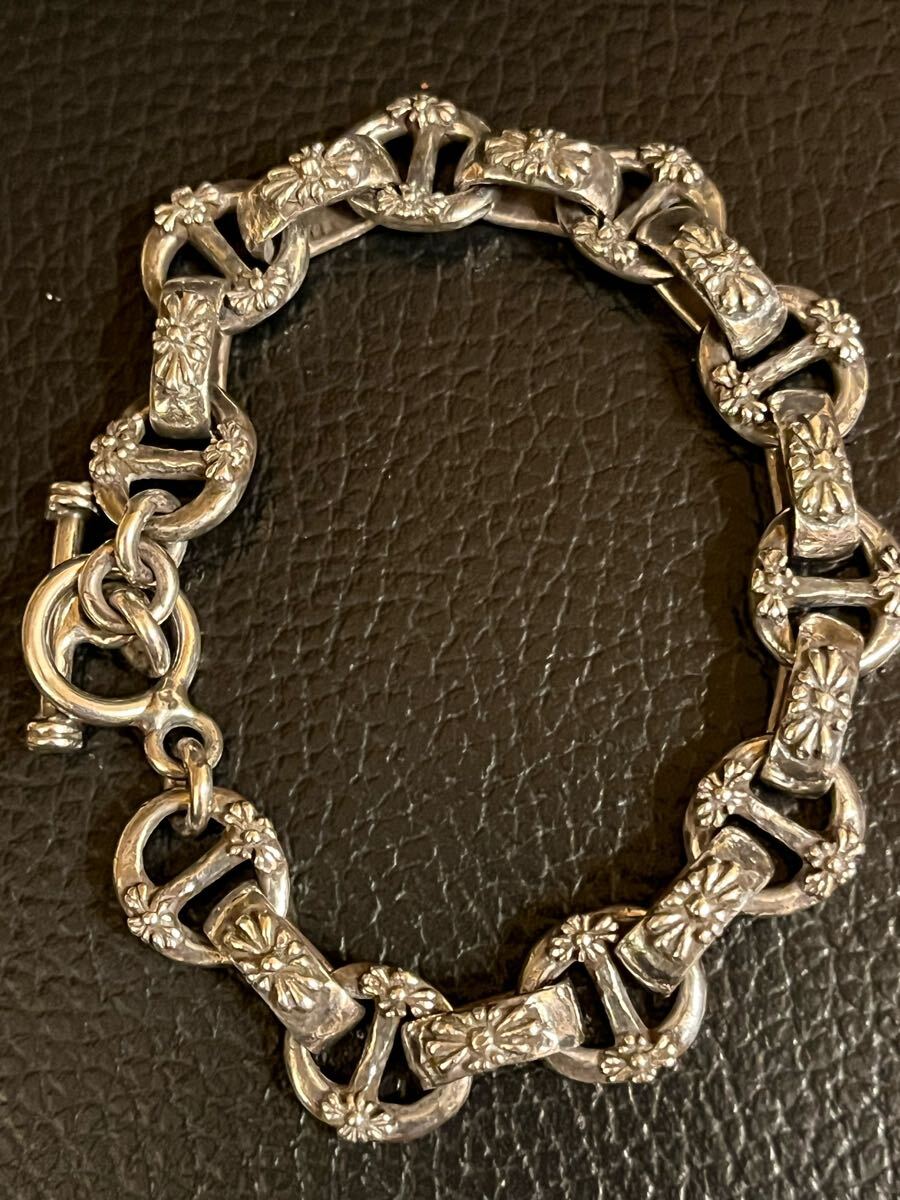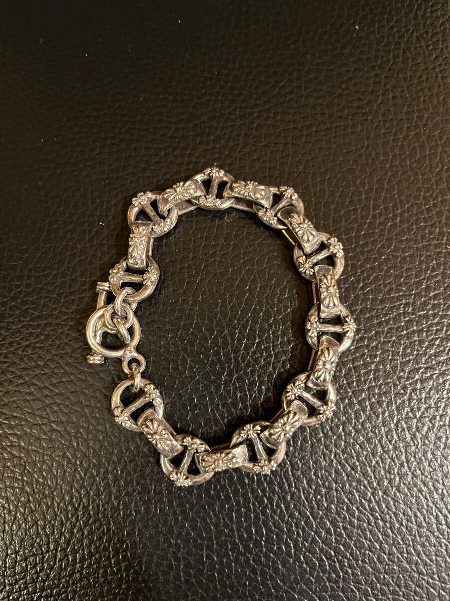 ノンブランド フローラルクロスIDブレスレットです。シルバーコーティング。小傷はありますが、目立った傷や汚れはございません。長さ22.5cm重さ52g