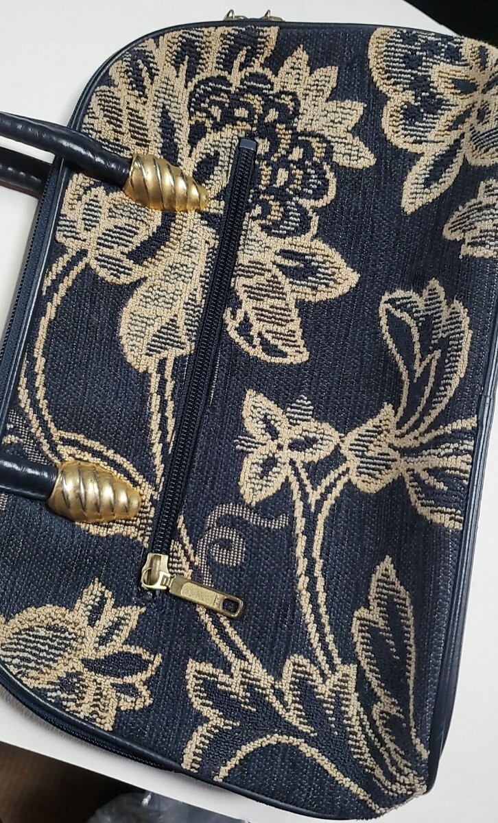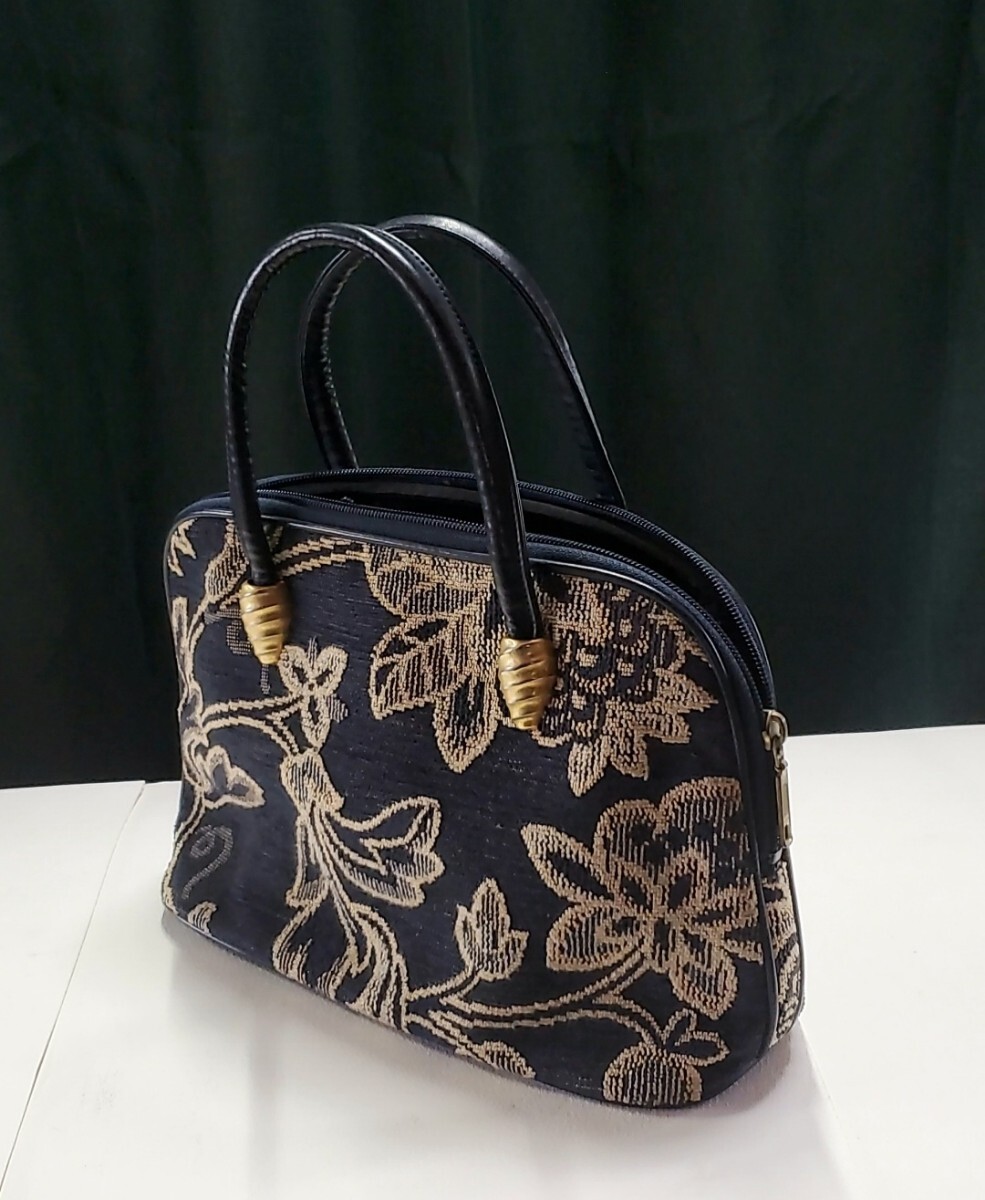 和装用 バッグ ゴブラン織り 花柄ネイビー/ベージュ ハンドバッグ レトロ