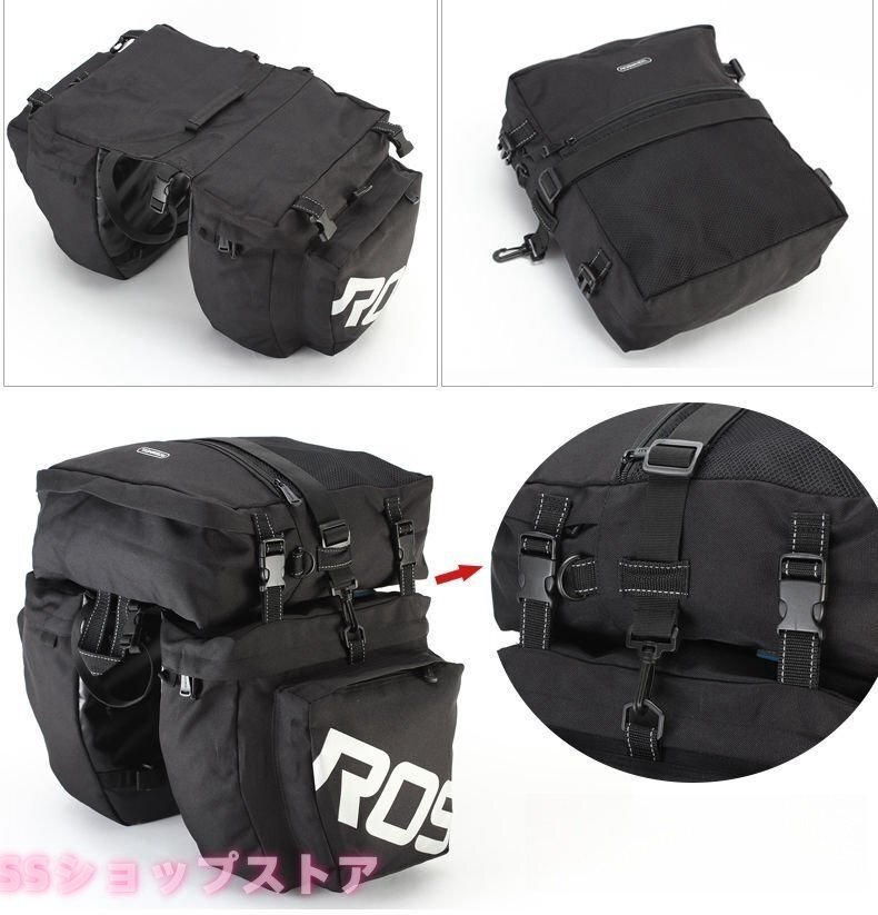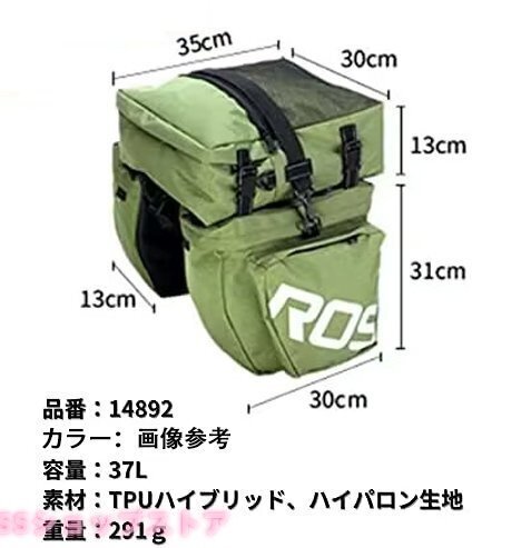 自転車 バッグ サイドバッグ 大容量 37L リアバッグ リアキャリア バイク サイクリング 荷台 防水 ブラック