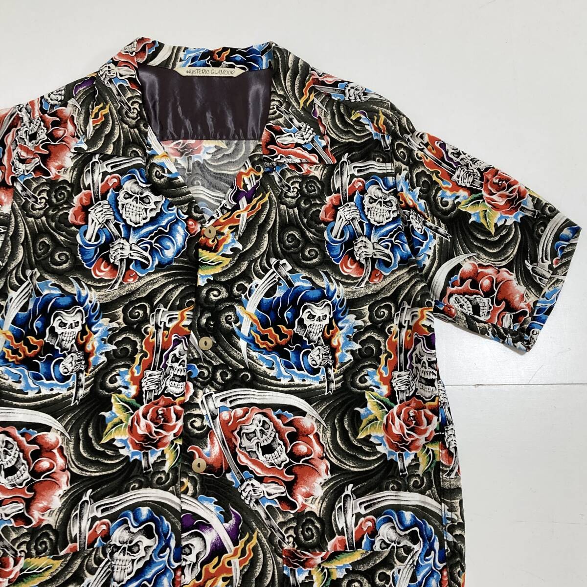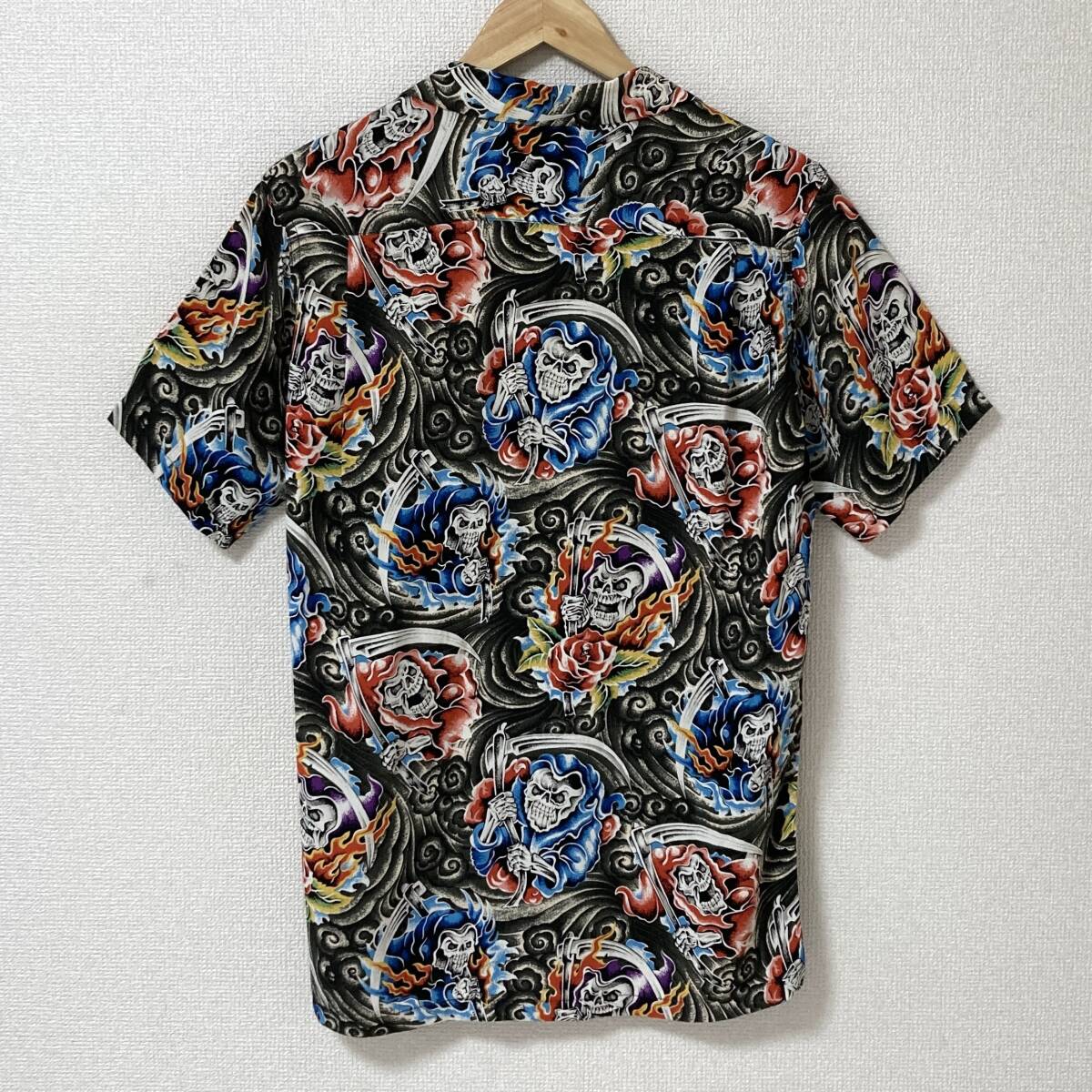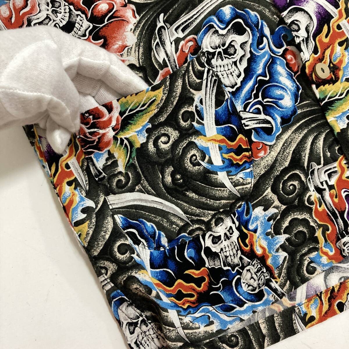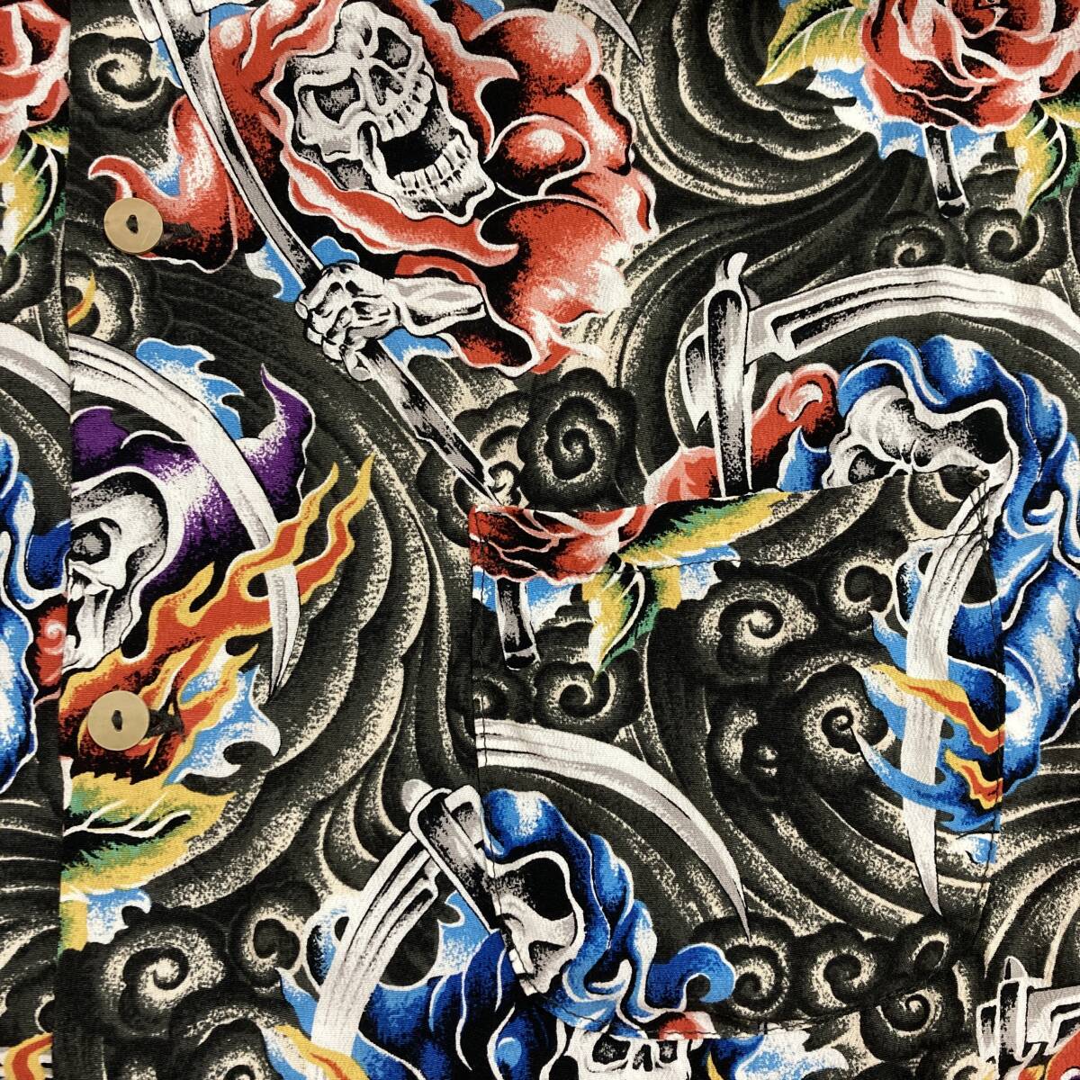 90s 00s HYSTERIC GLAMOUR 死神 総柄 レーヨン アロハシャツ ヒステリックグラマー オープンカラー 開襟 Y2K VINTAGE archive 4090190
