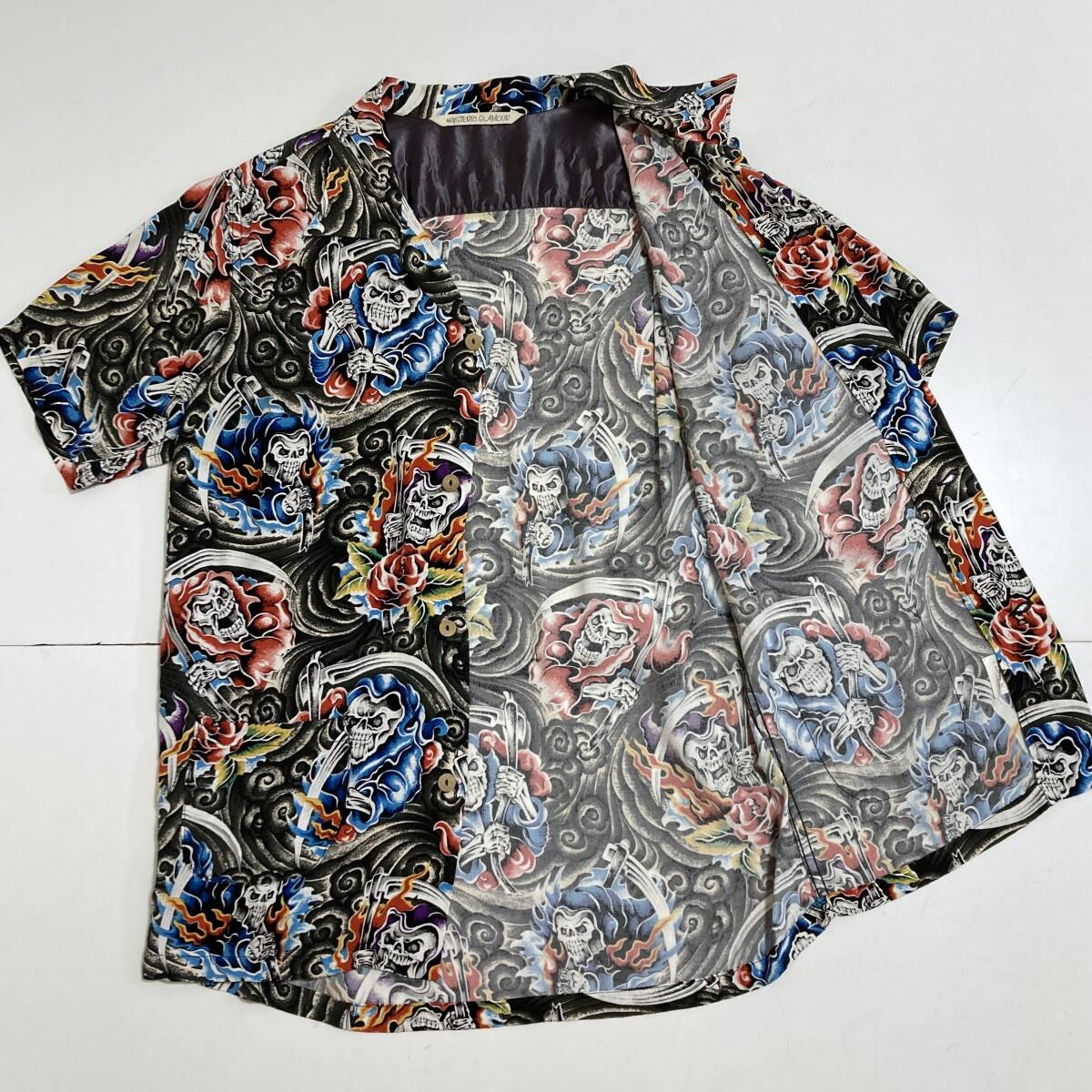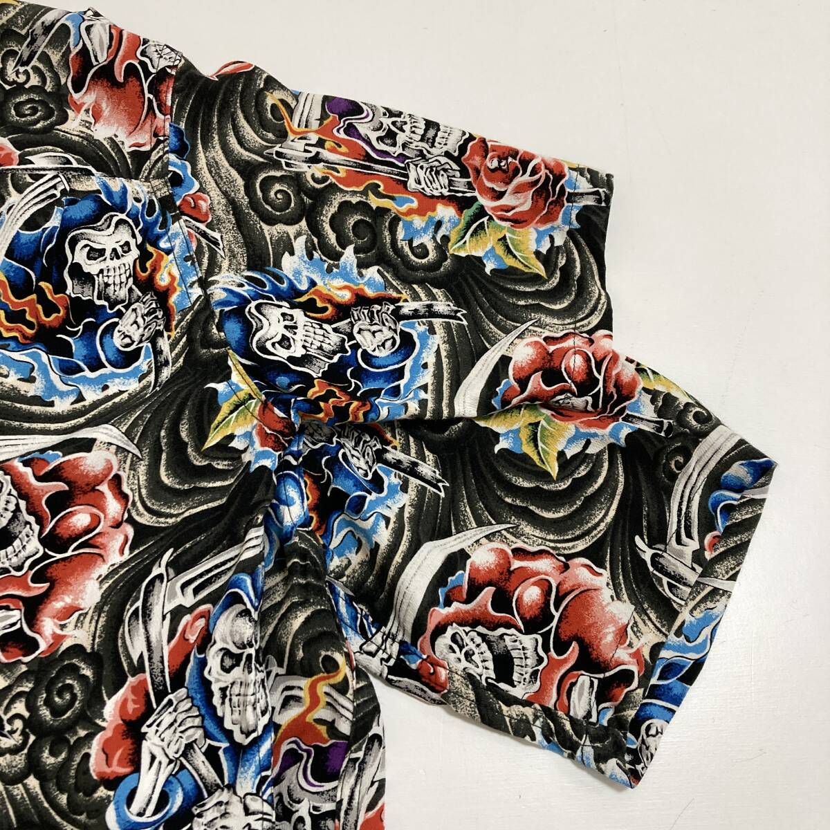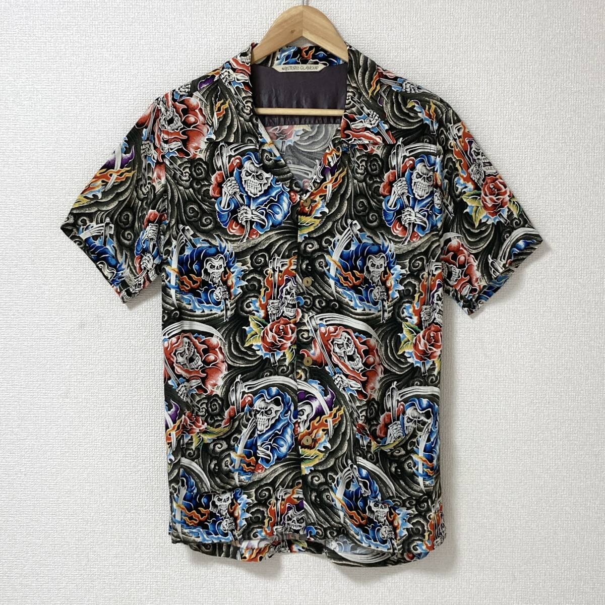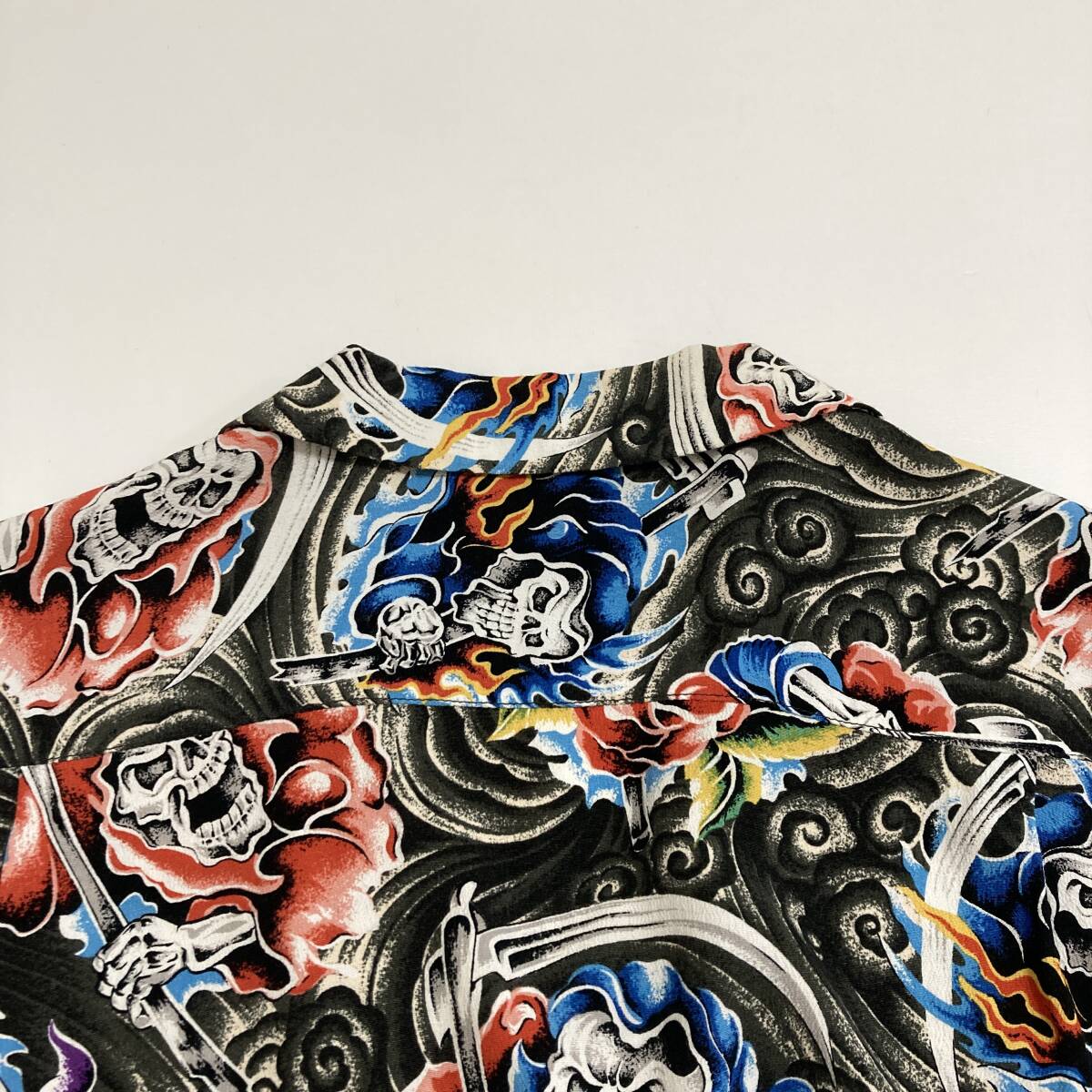 90s 00s HYSTERIC GLAMOUR 死神 総柄 レーヨン アロハシャツ ヒステリックグラマー オープンカラー 開襟 Y2K VINTAGE archive 4090190