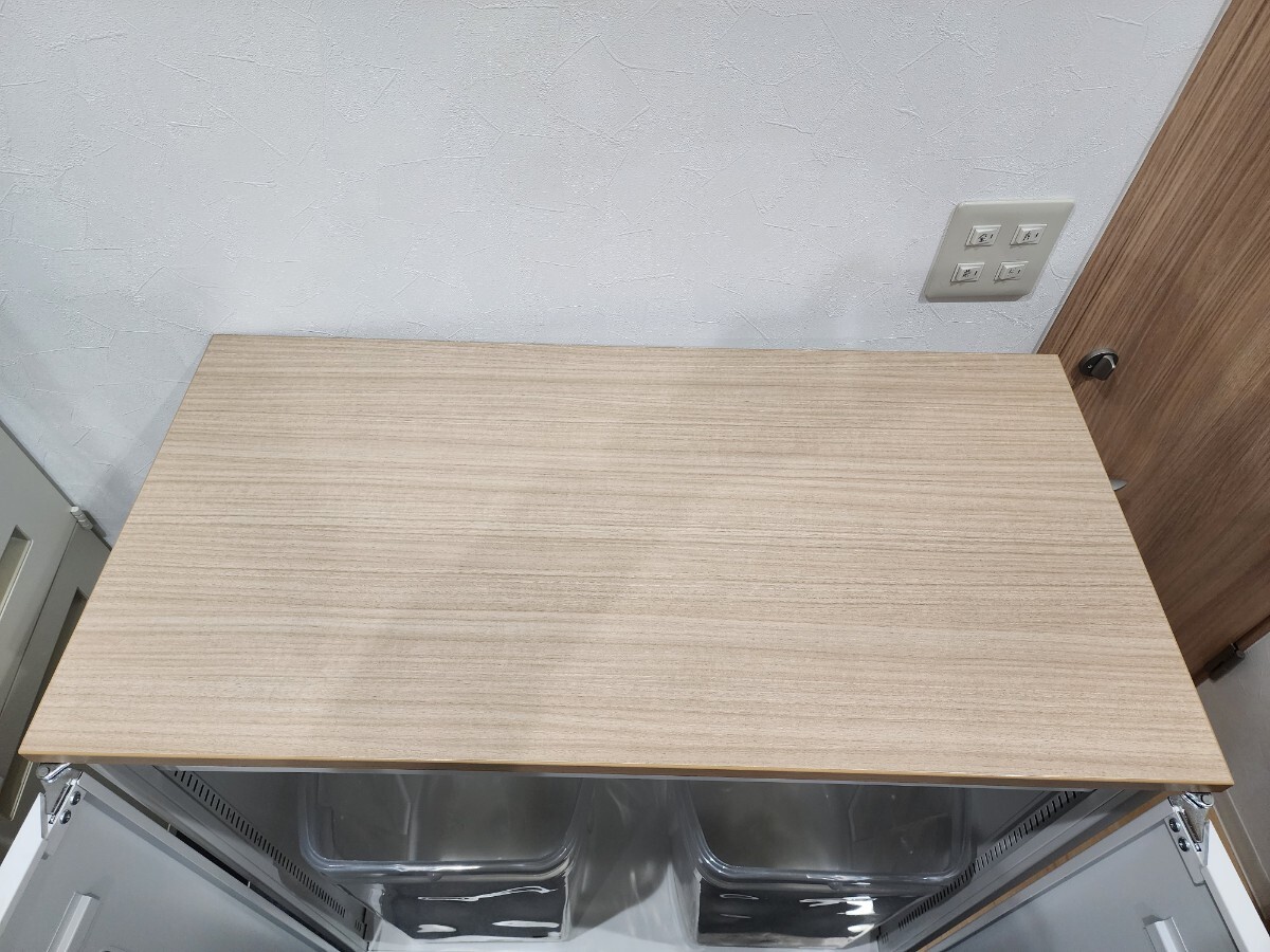 天板はナチュラルな木目調で、小物などインテリア雑貨を置くことも可能です。
