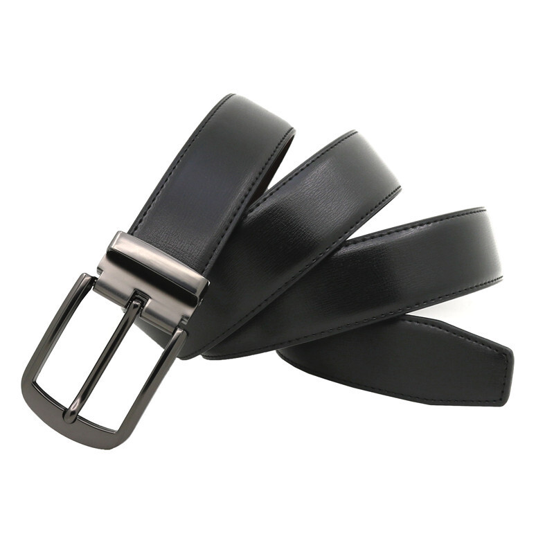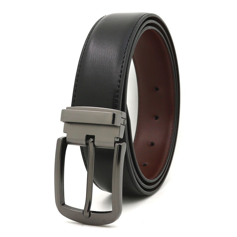 リバーシブル デザイン レザーベルト ◆ 本革 メンズ ブラック ブラウン 黒 茶 フリーサイズ 新品 未使用 ビジネス カジュアル 【PN221-7】