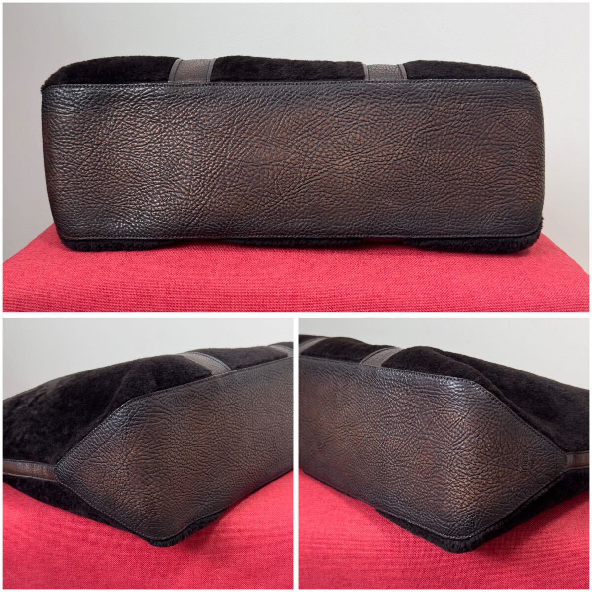 もちろんベルルッティならではのブラウンパティーヌ仕様で、贅沢にハンドル部分まで継ぎ目のない1枚革で仕立てており、柔らかなムートンの素材感との対比がユニークです。