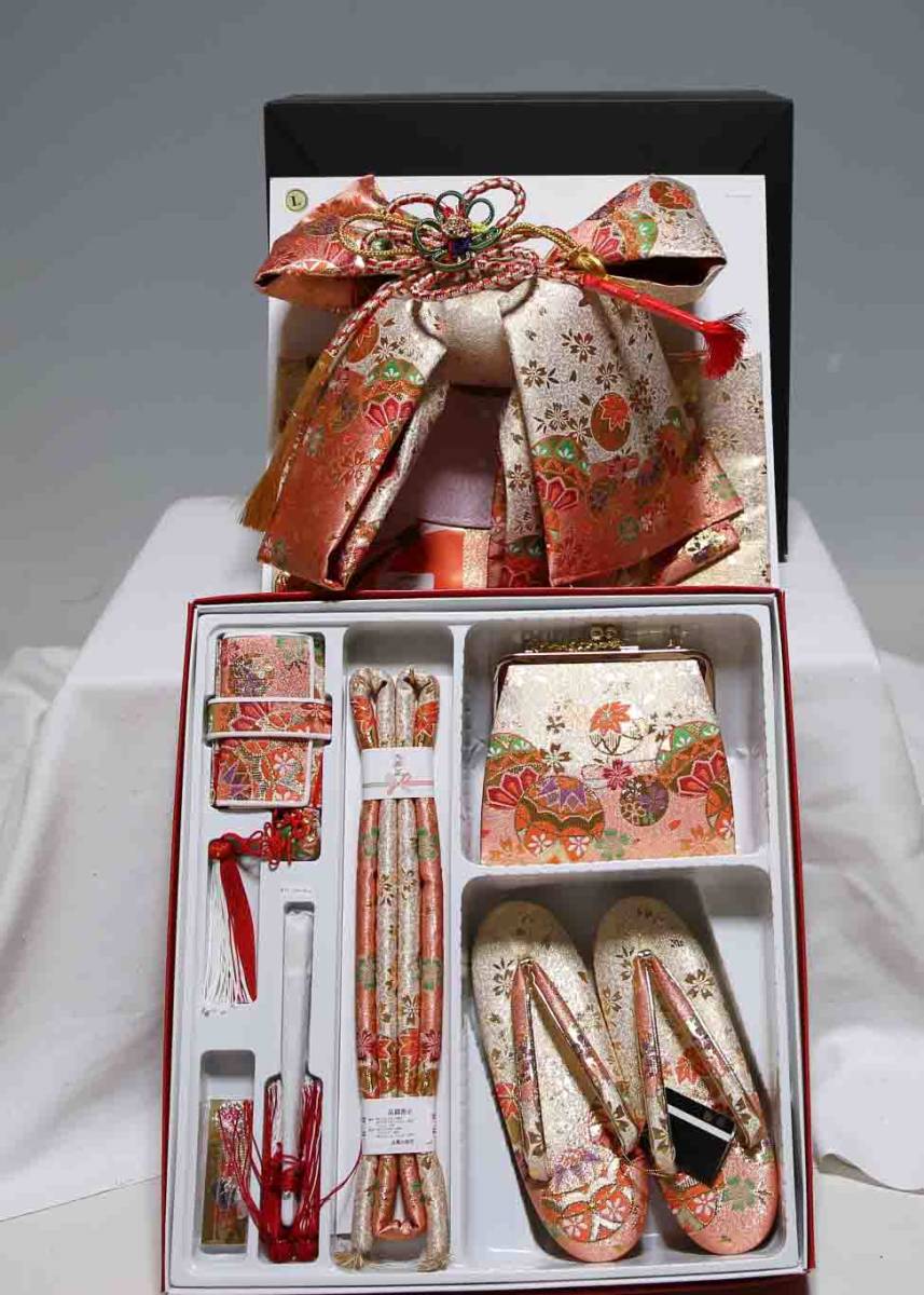 商品説明 | 七五三用 結び帯と はこせこセットを 同柄で 組み合わせた商品です 材質は 化学繊維です 草履サイズは 21cm 帯は 大サイズです 帯・はこせこセットは それぞれ専用の箱に入っていますが 2点を 一緒に収納する箱は付いていません 写真は 見本です お買い上げ後 お送りする商品は 同色 同柄ですが 結び帯の 帯飾りのデザインが写真と 多少異なる場合があります 素材 科学繊維 サイズ 草履サイズ 21cm 帯サイズ 大 | |