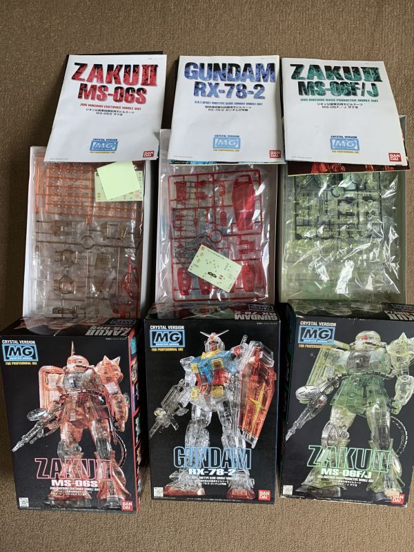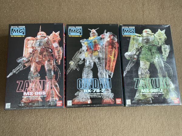MS-06F/J ザクII(量産型)、MS-06S シャア?アズナブル専用 ザクII、RX-78-2 ガンダム クリスタルバージョン 3点セット