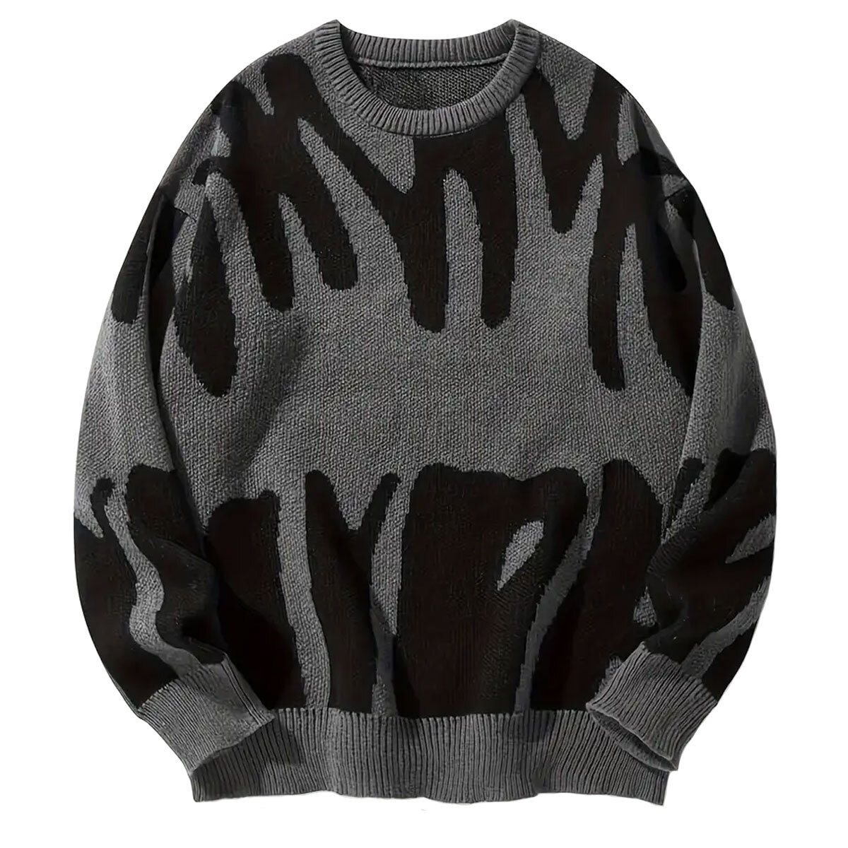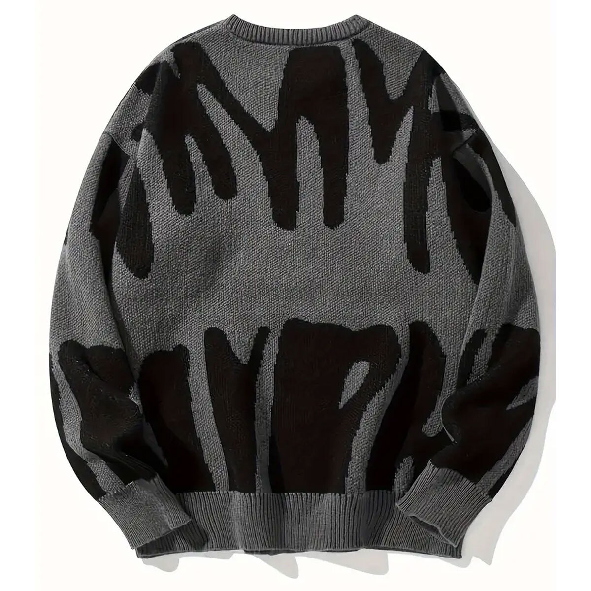 総柄 ジャガード ニット セーター ユニセックス ドロップショルダー 男女兼用 ブラック ホワイト カジュアル ストリート チャコール