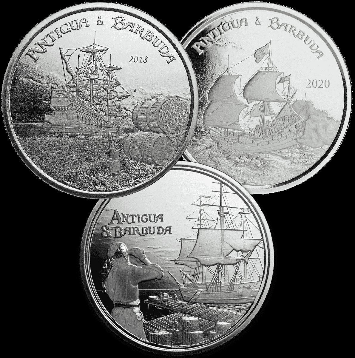 商品名  : (新品) アンティグア・バーブーダ「 パイレーツ・海賊船・ラム酒 」純銀 1オンス 銀貨セット