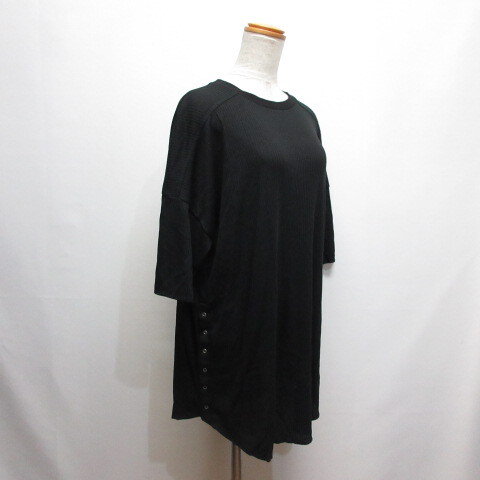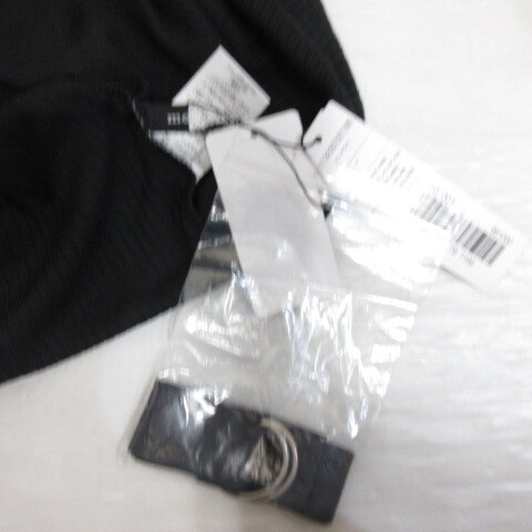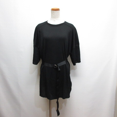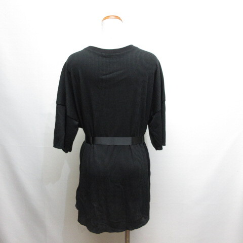 未使用品 メルロー merlot 五分袖 リブ カットソー チュニック ベルト付き 黒 ブラック タグ付き レディース