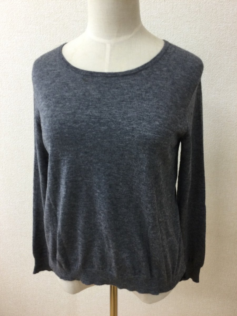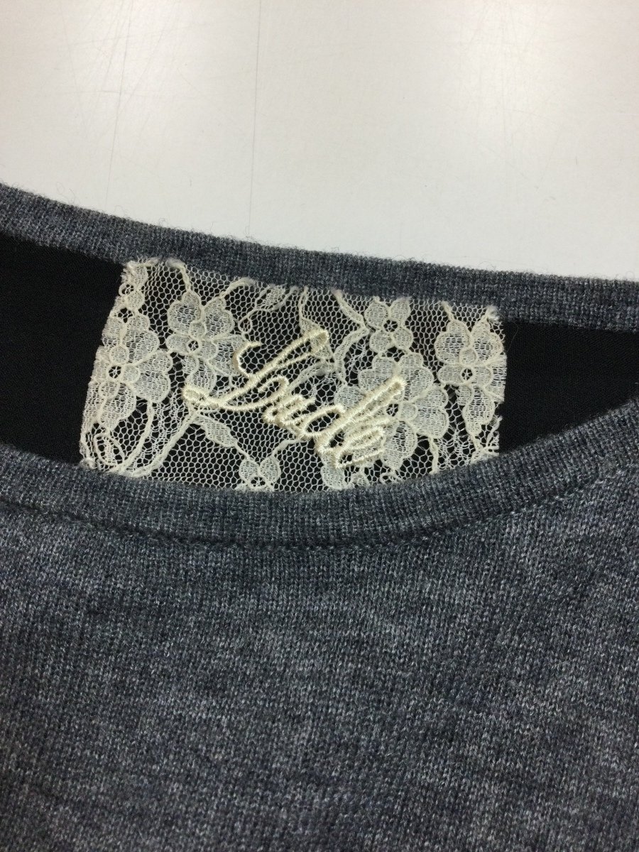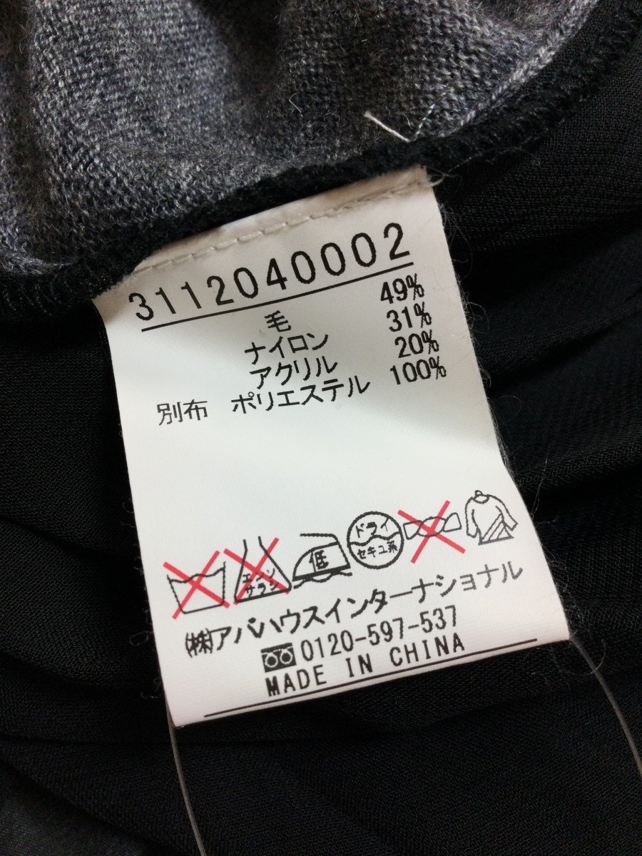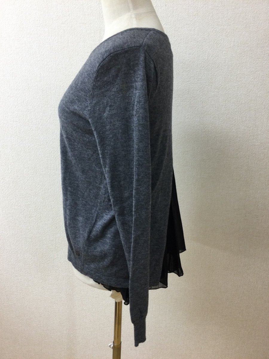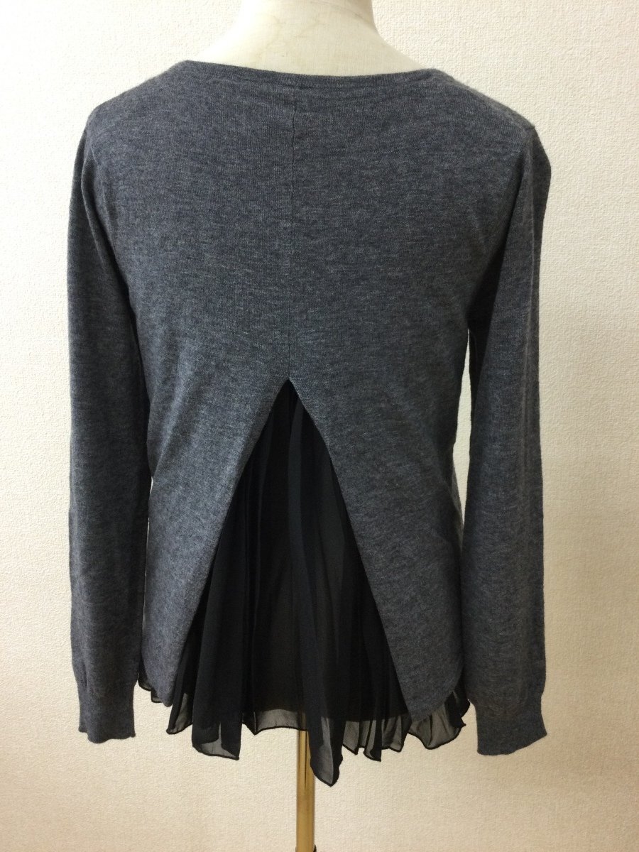 管理番号:99^135292 アバハウス Lade 濃いめグレーのニット 後ろ切れ込みから裾に黒プリーツシフォン 表示サイズ:なし 実寸(参考)