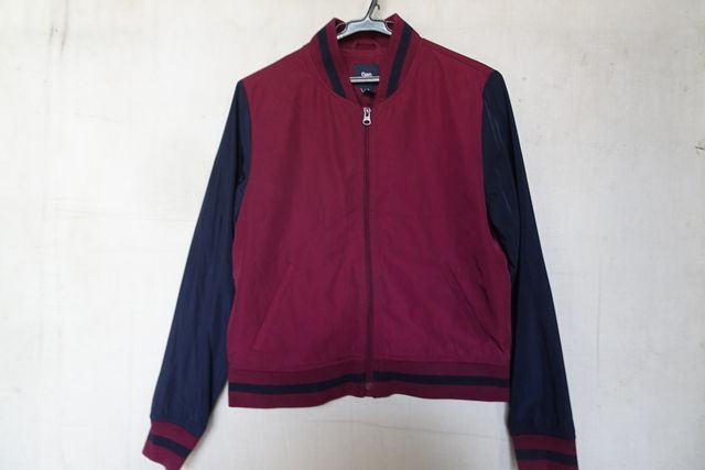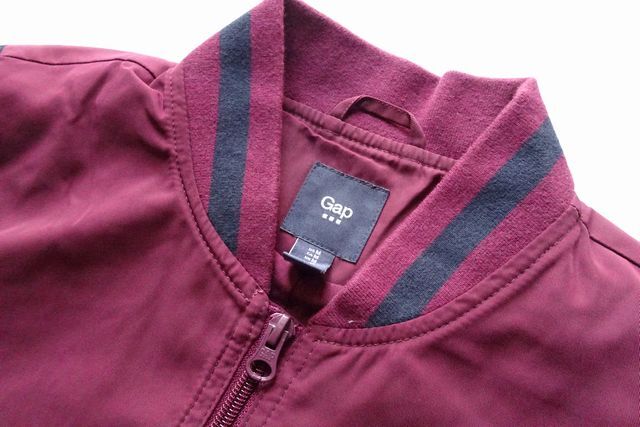 Gap/ギャップ/ブルゾン/ジャンパー/アウター/前ジップアップ/袖紺切替配色/紺ライン入リブ素材/赤紫/ワイン色/Mサイズ(4/16R7)