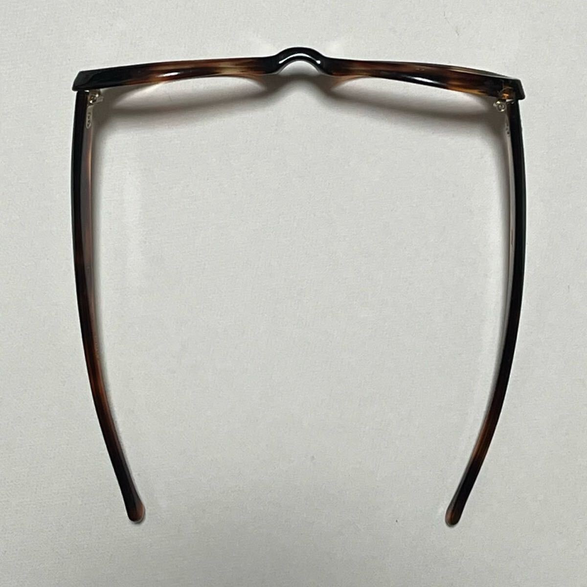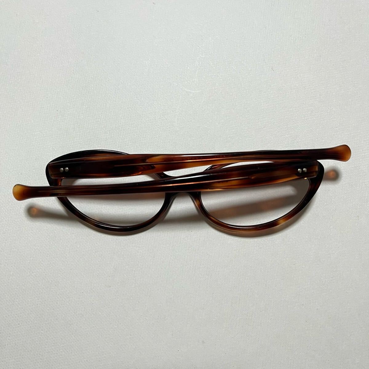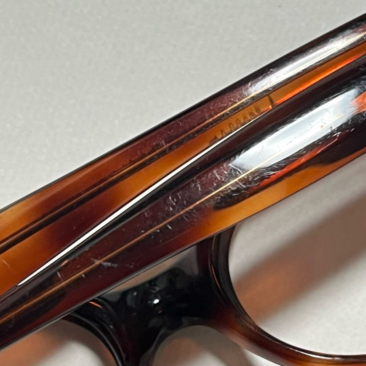 透明感の強いアンバーカラー、交錯する様に配されたストレートテンプル、テンプルに施された2ドット等、この年代らしいディティールが散見される”らしい”一本です。
