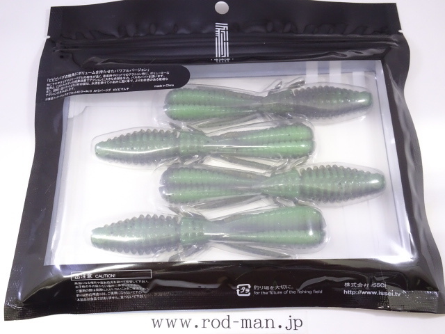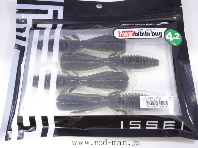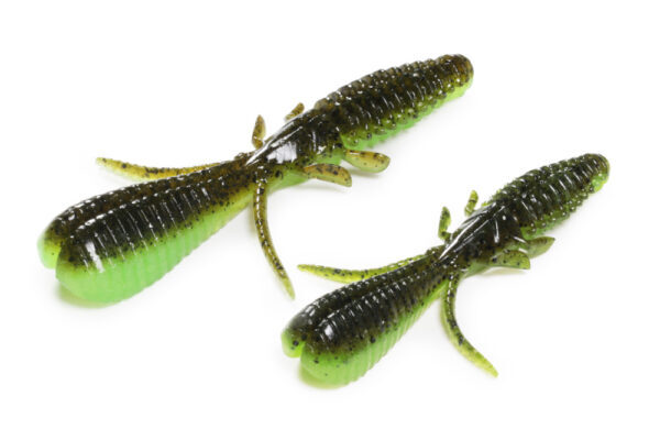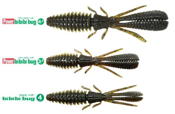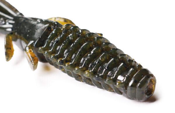 テキサスリグやフリーリグとの相性が良く、着底時やロッドでのアクション時に、ボリューミーな 触角と、くびれたボディの相乗効果でアクションに大きな余韻を生み、バスのバイトを誘います。 また、頭部に設けた小さな2対の脚は、水流を受けて小刻みに動く事で、より生命感のある複雑な アクションを生み出します。
