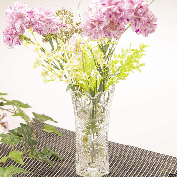 シンプルで高級感のあるクリアガラスが、花の美しさを一層引き立て、インテリアにも自然に溶け込みます。