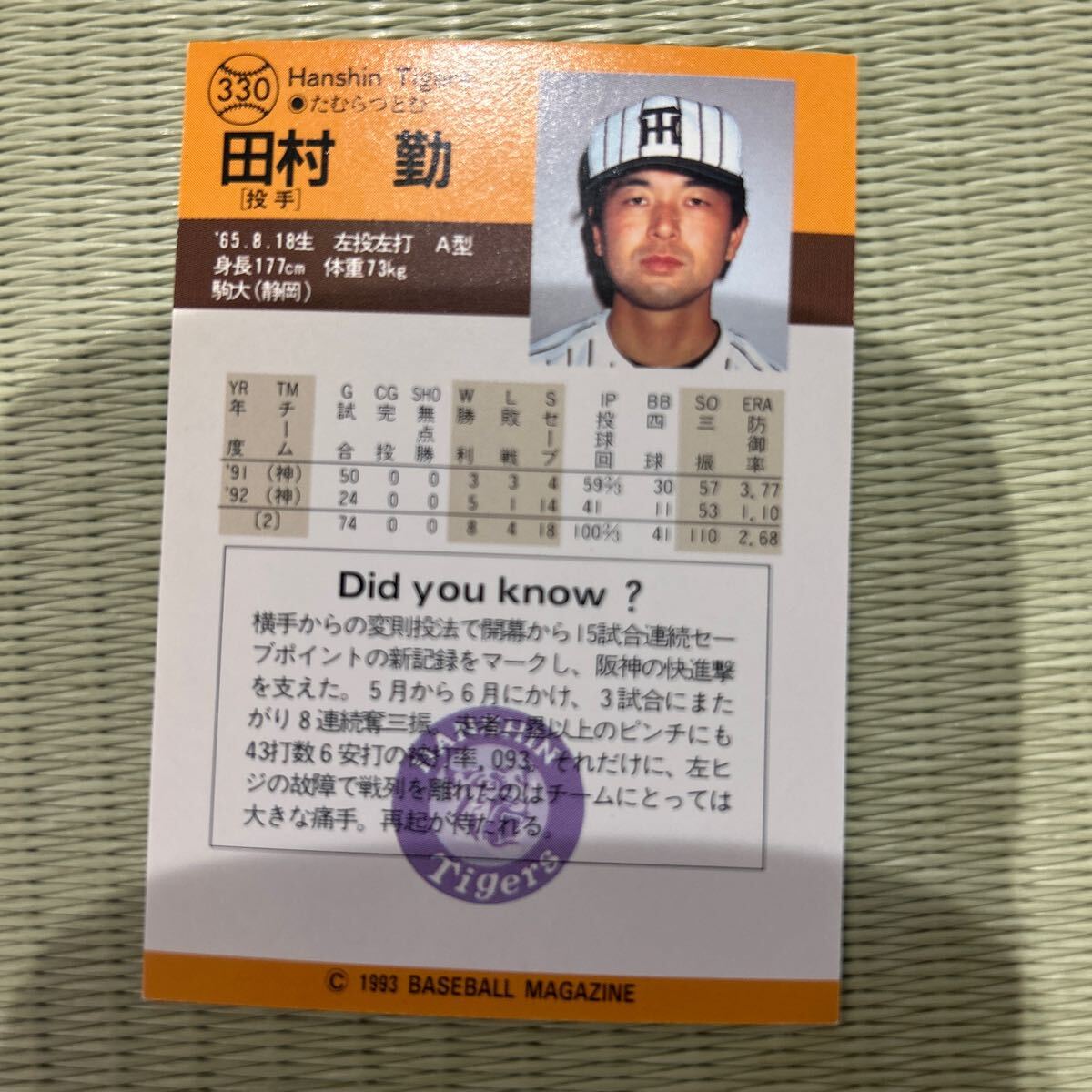 1993BBM 330 田村勤 阪神タイガース