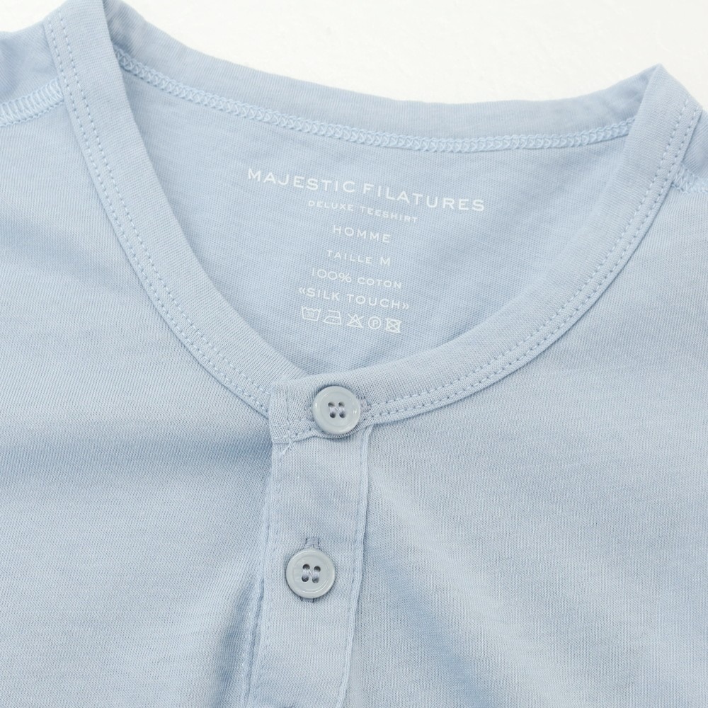 【新品】マジェスティック フィラチュール オム MAJESTIC FILATURES HOMME コットン ヘンリーネック 半袖Tシャツ ライトブルー【サイズM】