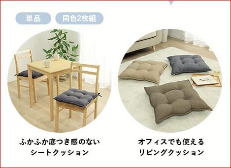 シートクッション 2枚組 ダイニングチェア座布団 ひも付き 厚み8cm 洗えます 座布団 クッション 日本製 BE  沖縄、諸島部は不可