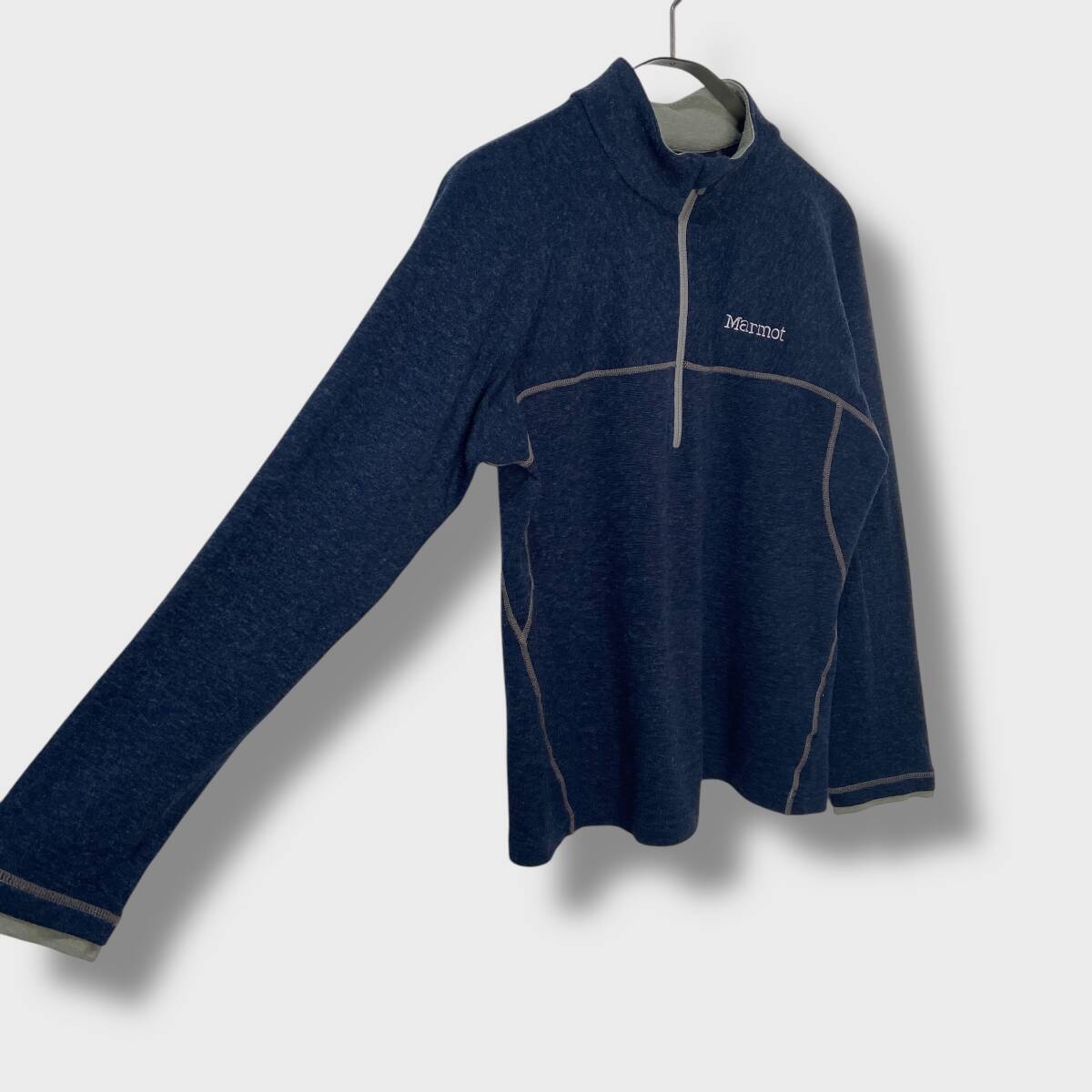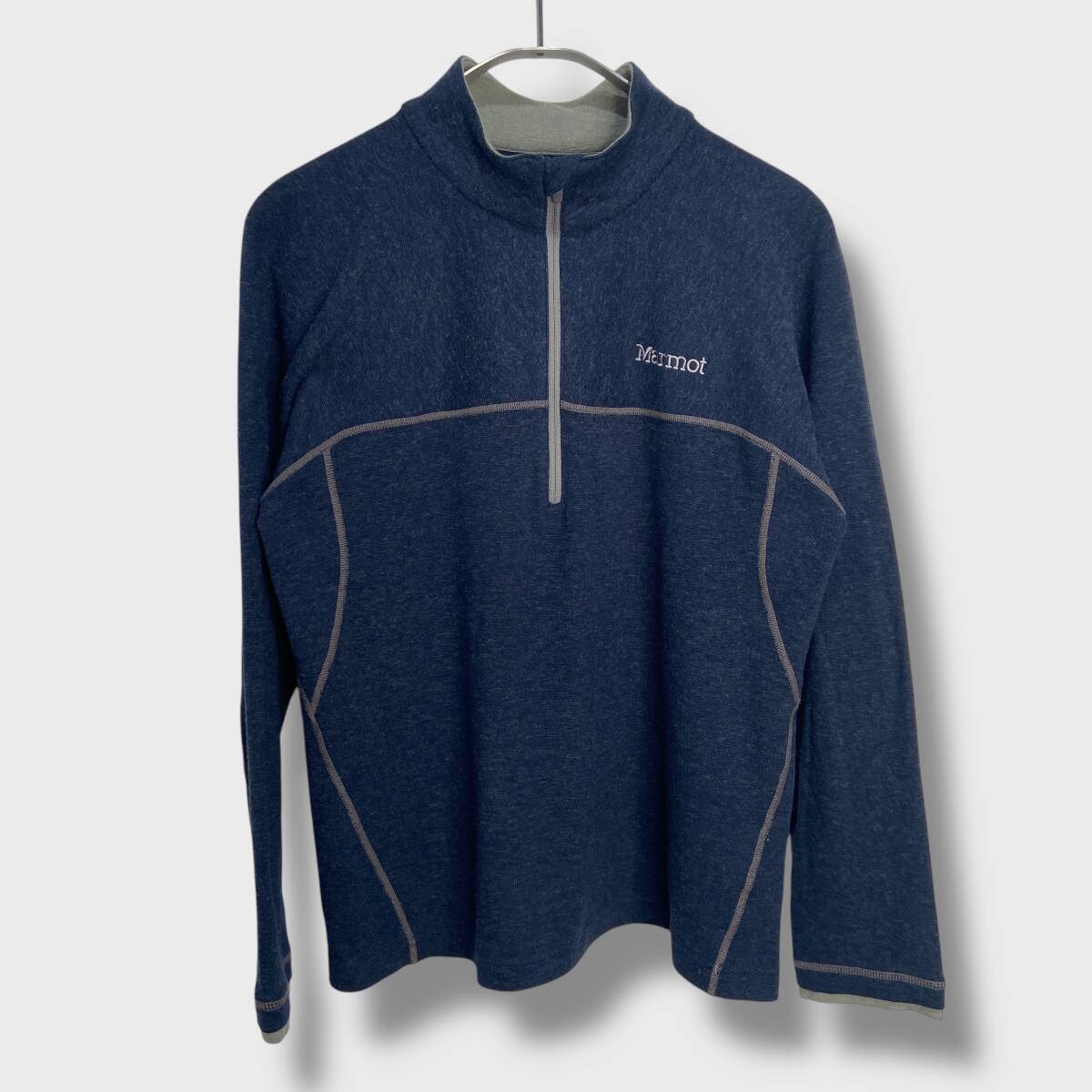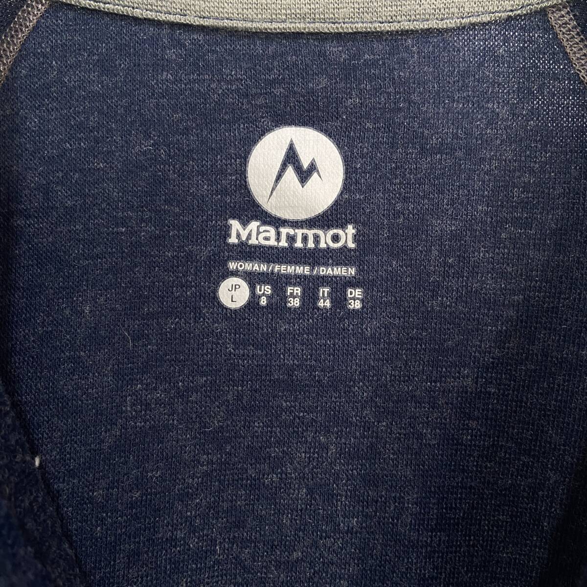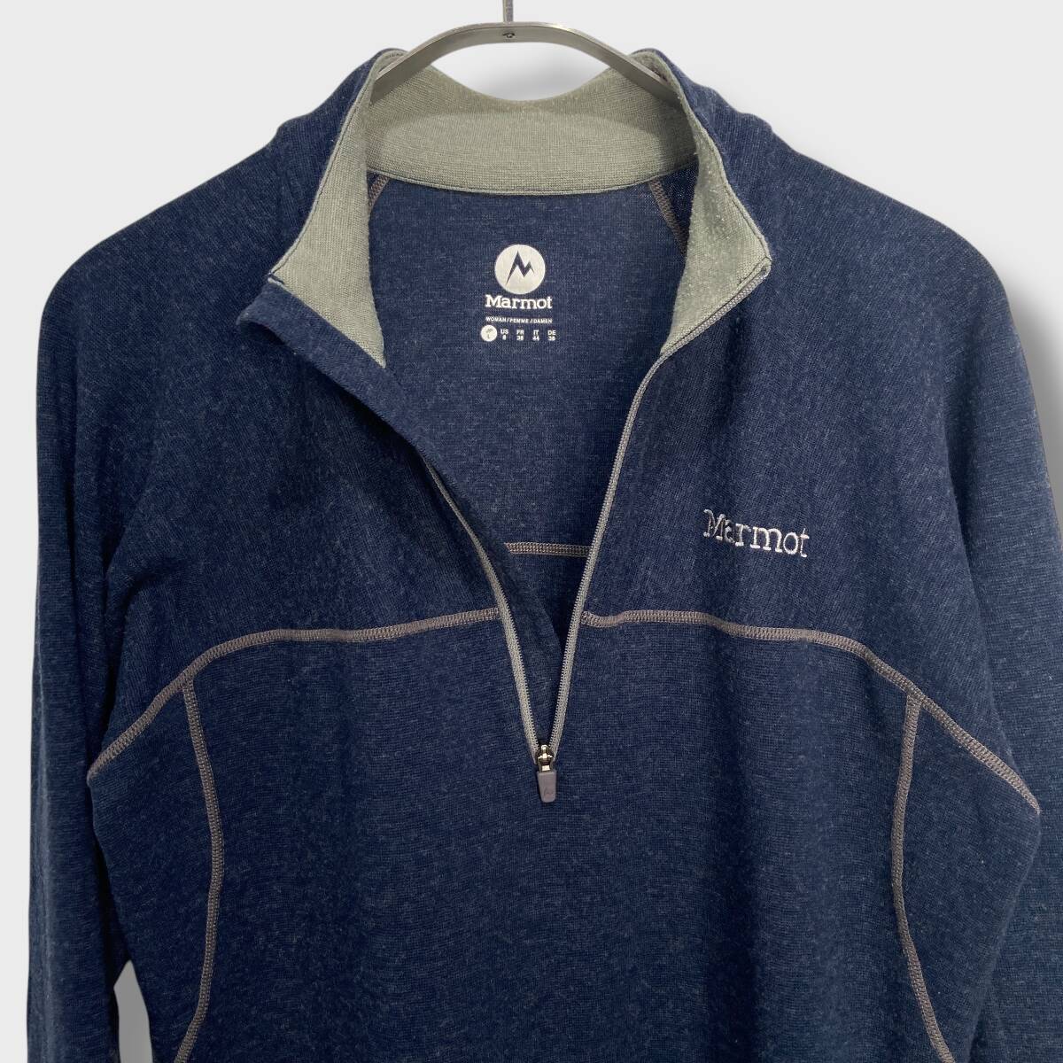 送料無料☆Marmot☆マーモット☆クライムウールストレッチロングスリーブジップ☆ハーフジップフリース☆薄手☆紺☆レディースL☆D25M