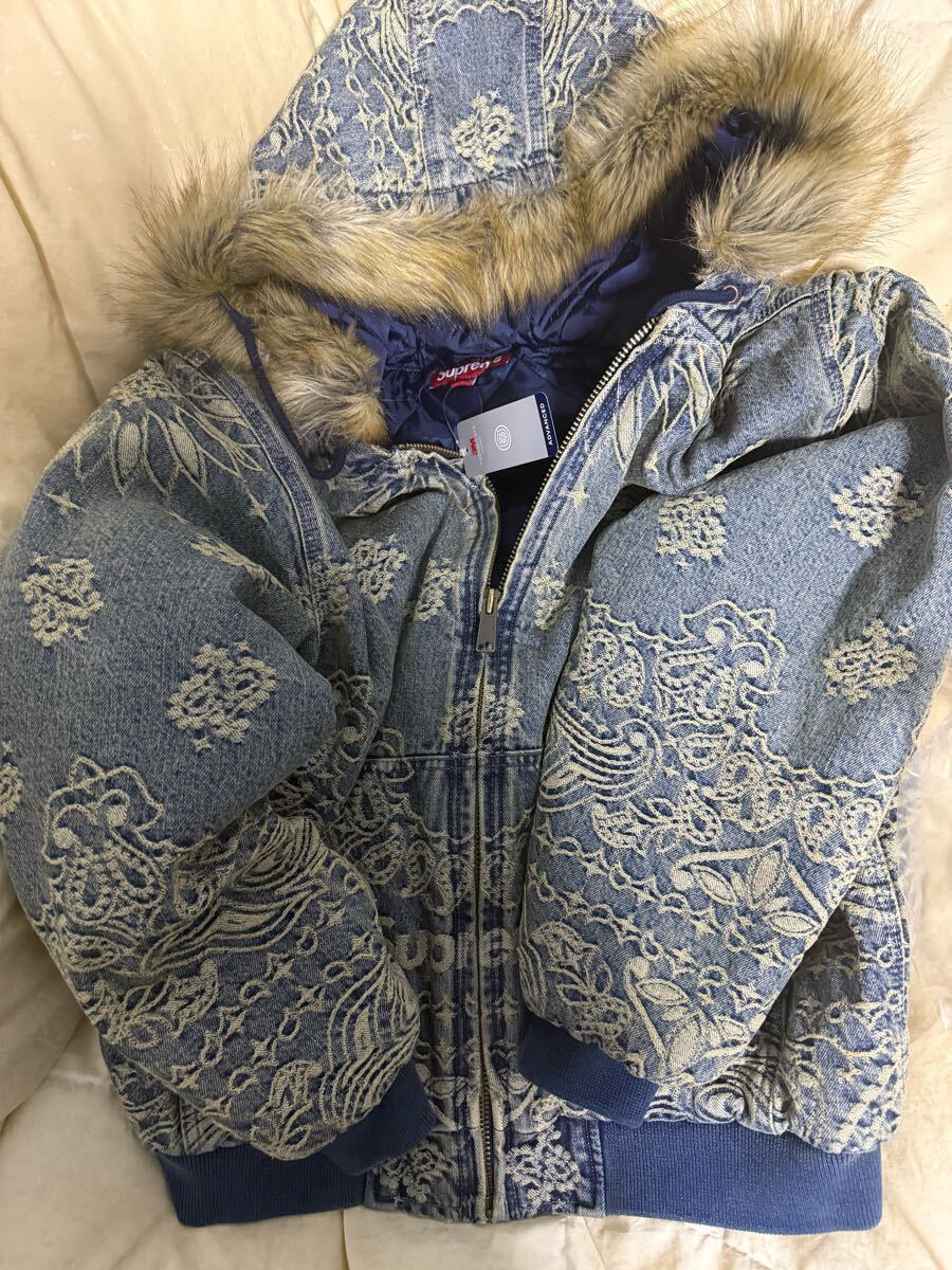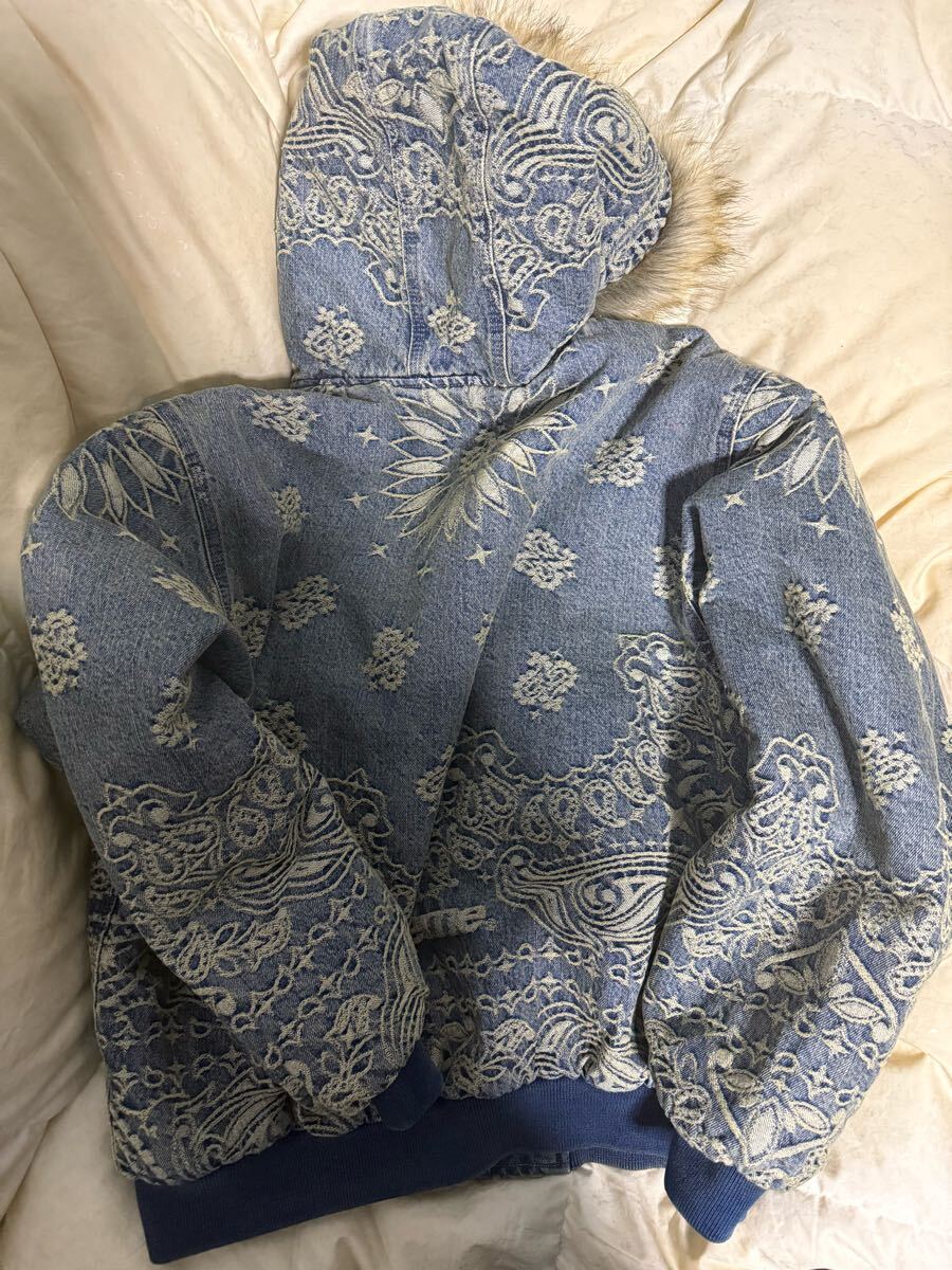 Supreme Bandana Jacquard Denim Hooded Work Jacket Blue Sサイズです。