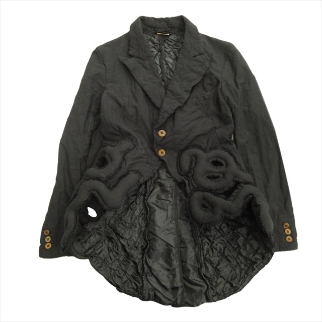 14ss コムデギャルソン COMME des GARCONS ポリ縮絨 パデット 燕尾ジャケット テーラード ジャケット 製品染め XS ブラック レディース