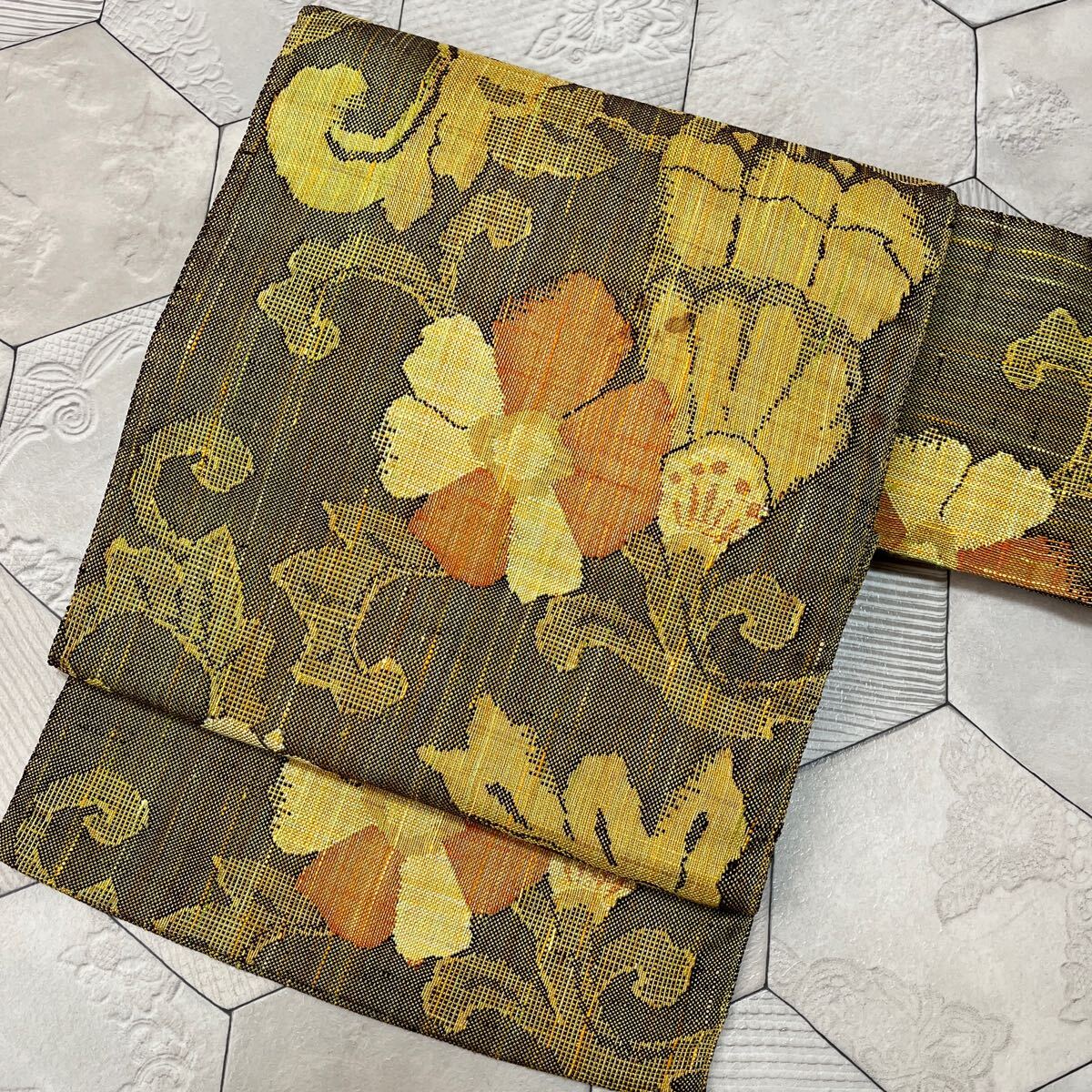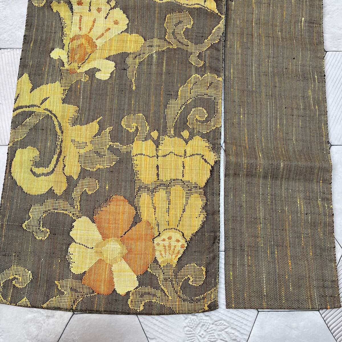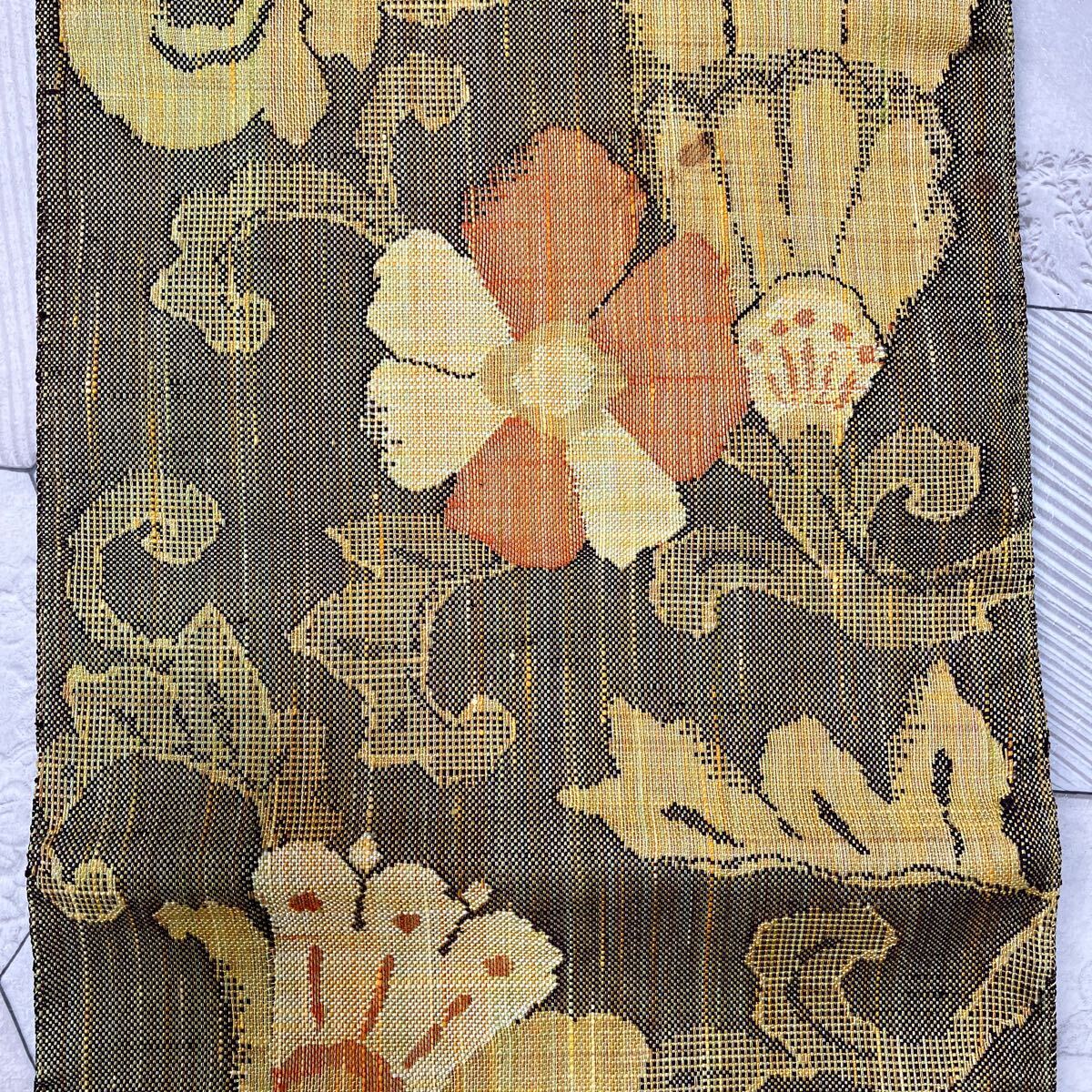アンティーク 名古屋帯 花 紬 着物 昭和レトロ 大正ロマン モダン 和洋折衷コーデ リメイク え30-6w