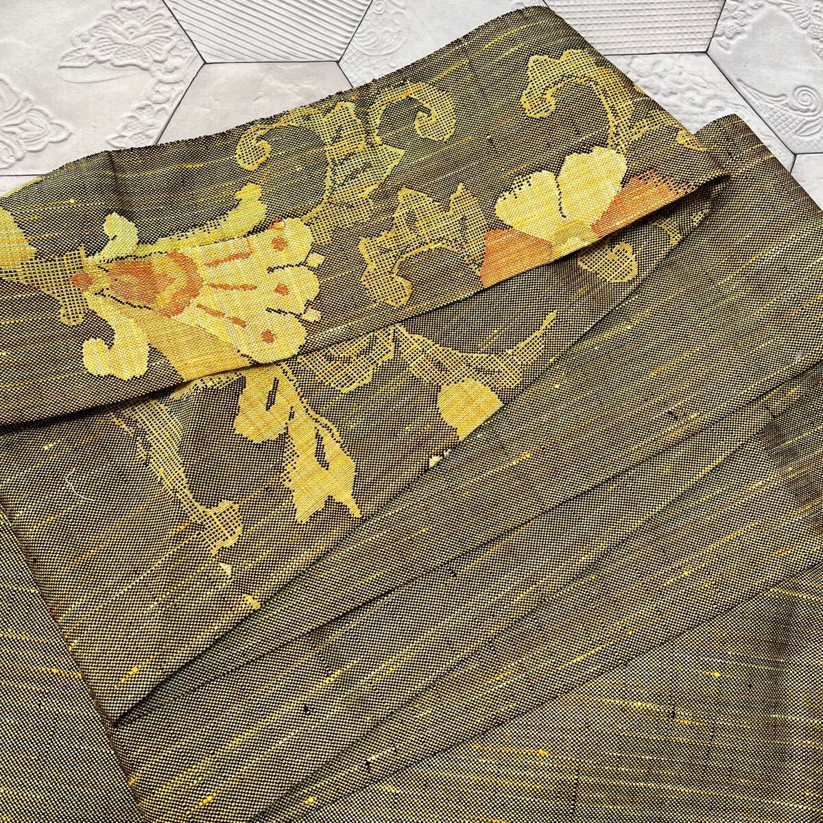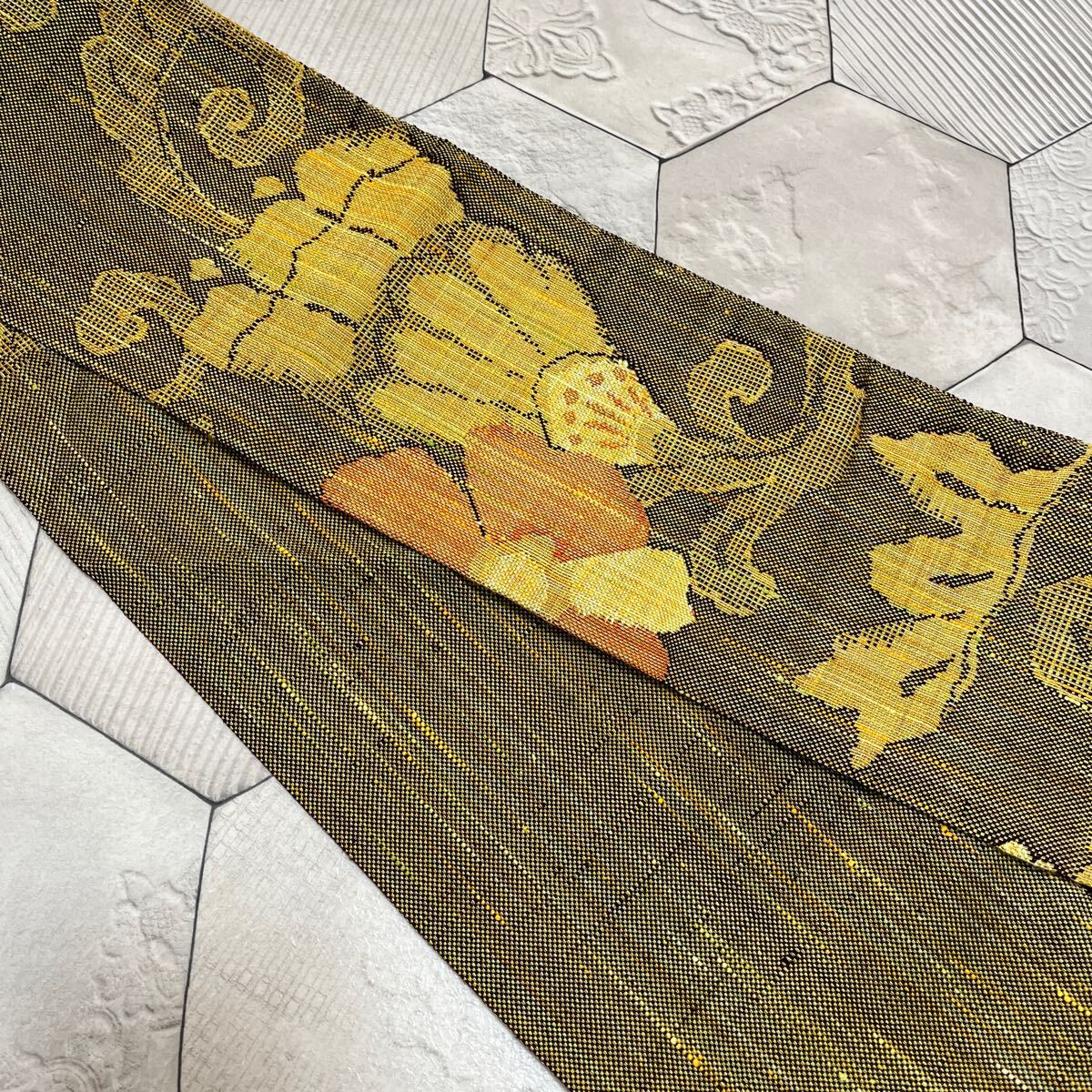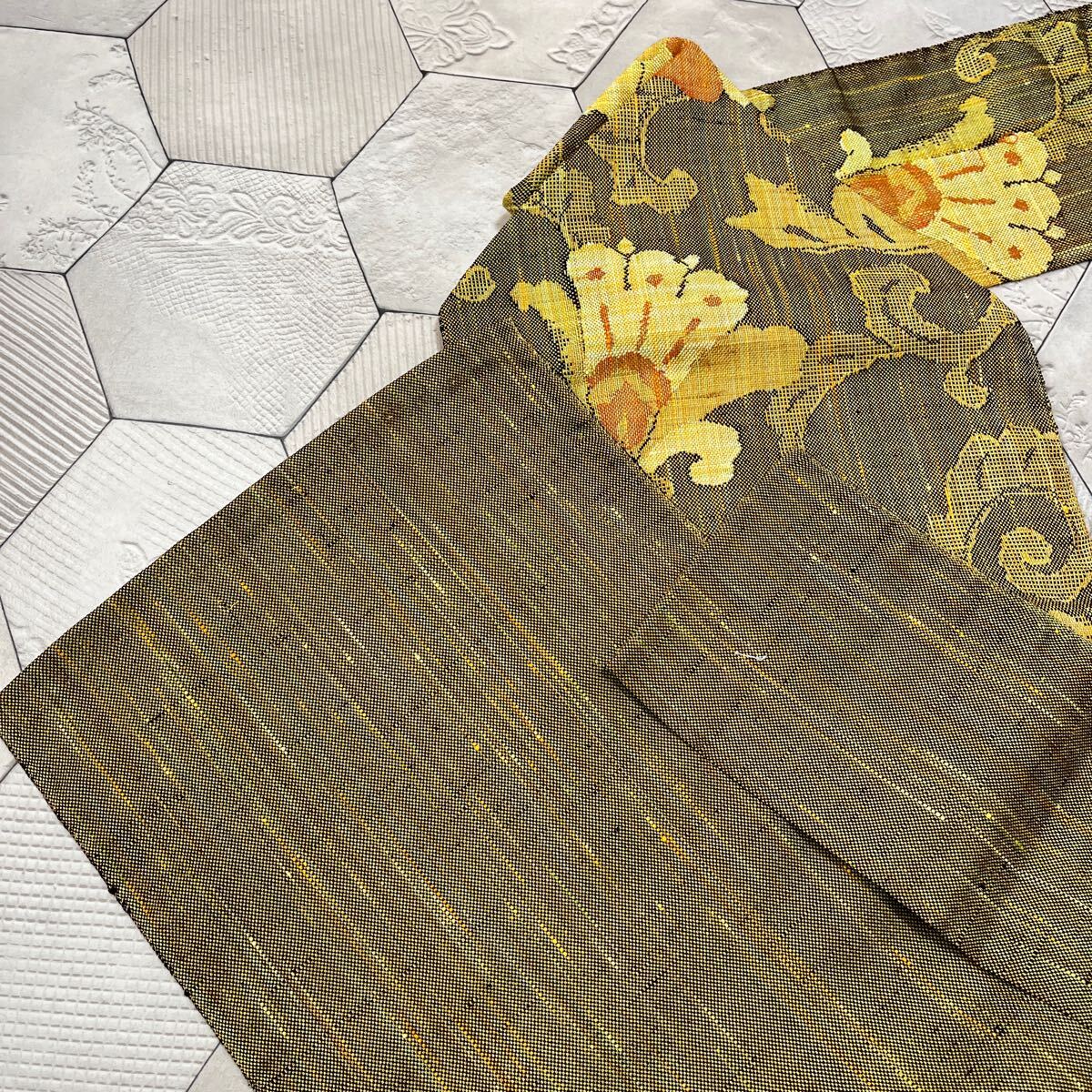 アンティーク 名古屋帯 花 紬 着物 昭和レトロ 大正ロマン モダン 和洋折衷コーデ リメイク え30-6w