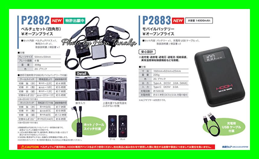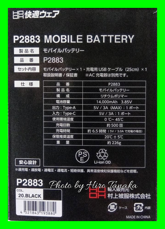 商品説明 | ※夏冬兼用冷暖対応 4ペルチェ 四角形 メッシュベストセット ◆すぐに使える3点セット P559ペルチェベストサイズL・P2882ペルチェセット・P2883モバイルバッテリー ◆冷暖兼用で夏の熱中症対策はもちろん冬の防寒対策としても使用できる ◆空調服と組み合わせて使用すれば効果は絶大(夏季) ◆スイッチONで瞬間冷却(夏季) ◆スイッチONで瞬間暖め(冬季) ◆ファンの風とペルチェの冷却でより涼しさを感じる(夏季) ◆ファンの風とペルチェの暖めでより暖かさを感じる(冬季) ※フルハーネス対応 ☆ベスト素材☆ (フロントメッシュ)ポリエステル95%・ポリウレタン 5% (その他)ポリエステル100% ☆セット内容☆ ・ペルチェベスト P559(2025モデル) サイズL 黒色 ・モバイルバッテリー P2883(2025モデル)※AC充電器は別売 ・ペルチェセット P2882(2025モデル) ☆電気用品安全法認証商品☆ ☆PSEマーク認証済☆ ☆登録事業者名:村上被服株式会社 ☆PSマークの種類:PSE |