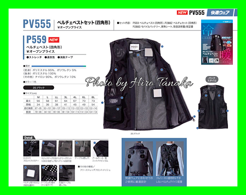 村上被服 夏冬兼用 4ペルチェメッシュベストセット 四角形 PV555 鳳皇 HOOH 黒色 ベストサイズL | |