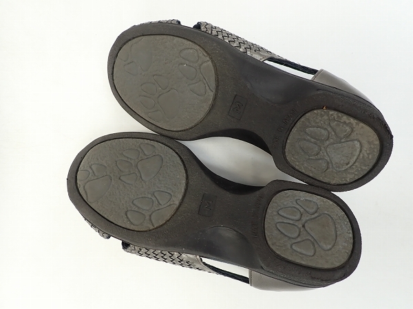 | こちらの商品は中古品です。使用感は少ないです。かかと周りに擦りキズが少しあります。かかとソールの減りはほとんどみられません。 箱はありません。 ※アウトソールにポリウレタン素材が使われている靴は、使用の有無や頻度に関わらずソール内部で経年劣化が進行している可能性があります。その場合、着用時にソール全体が破損する恐れがあります。 また、アウトソール接着部分の剥がれ、インソールや内部側面素材の剥がれ、ストラップのゴムの劣化、ピンヒール素材の破損などの経年劣化も考えられます。 外観では判断のできない劣化ですので予めご理解の上ご入札下さい。 商品到着後1週間以内に数回の試し履きをお願い致します。試し履き後、商品に問題がある場合は対応させて頂きますので取引メッセージよりご連絡下さい。 | |