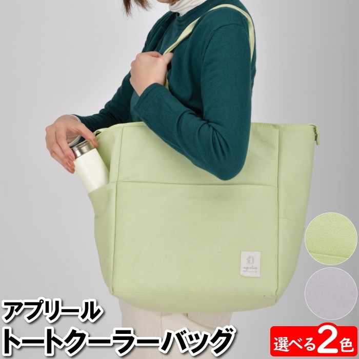 | たくさん入るマチ付きクーラーバッグ。 正面と左右に3種類のポケット付き。 正面ポケットに花柄デザイン。 |
