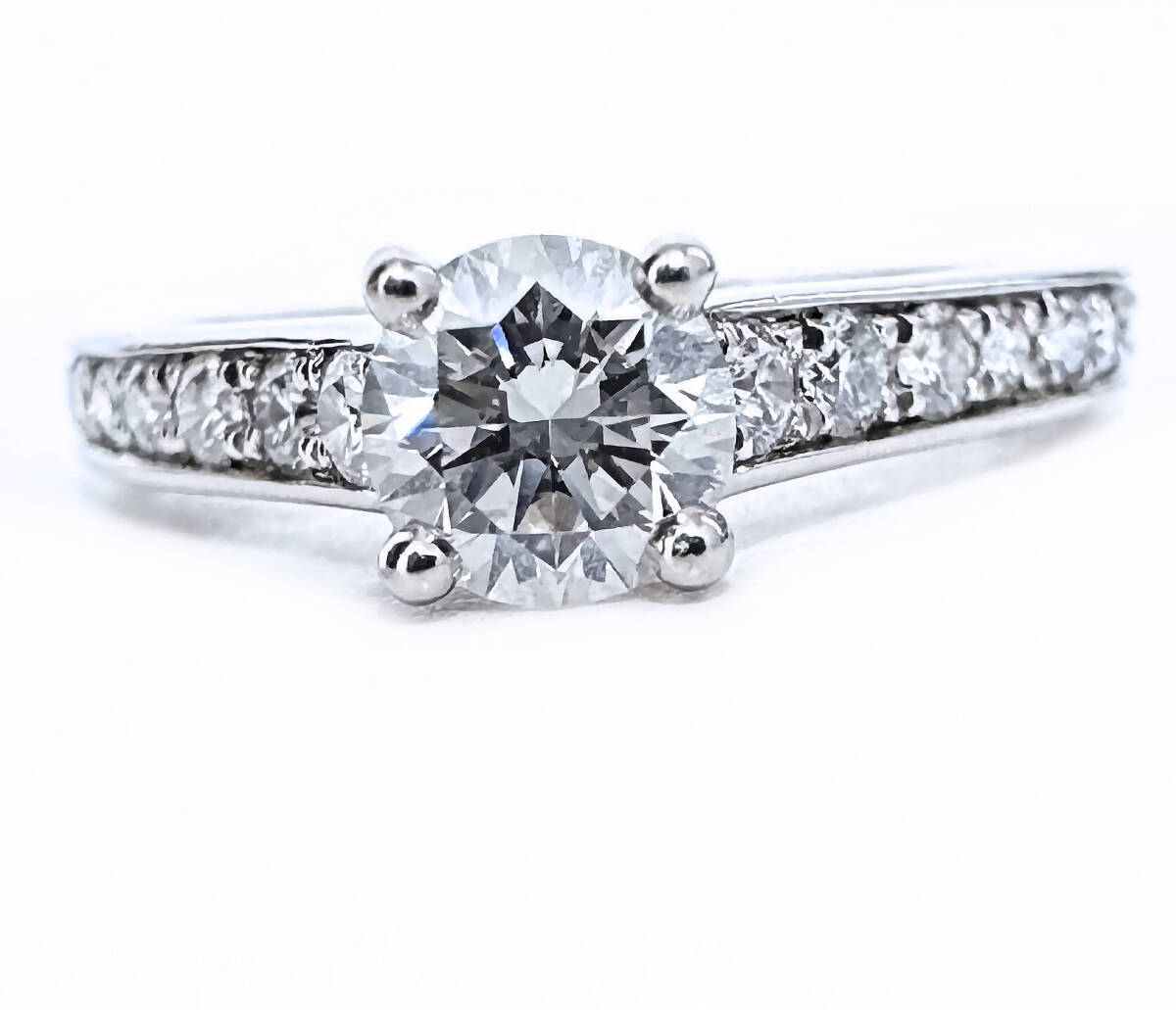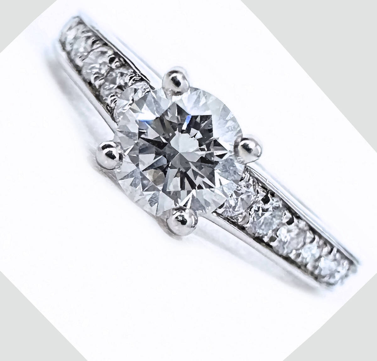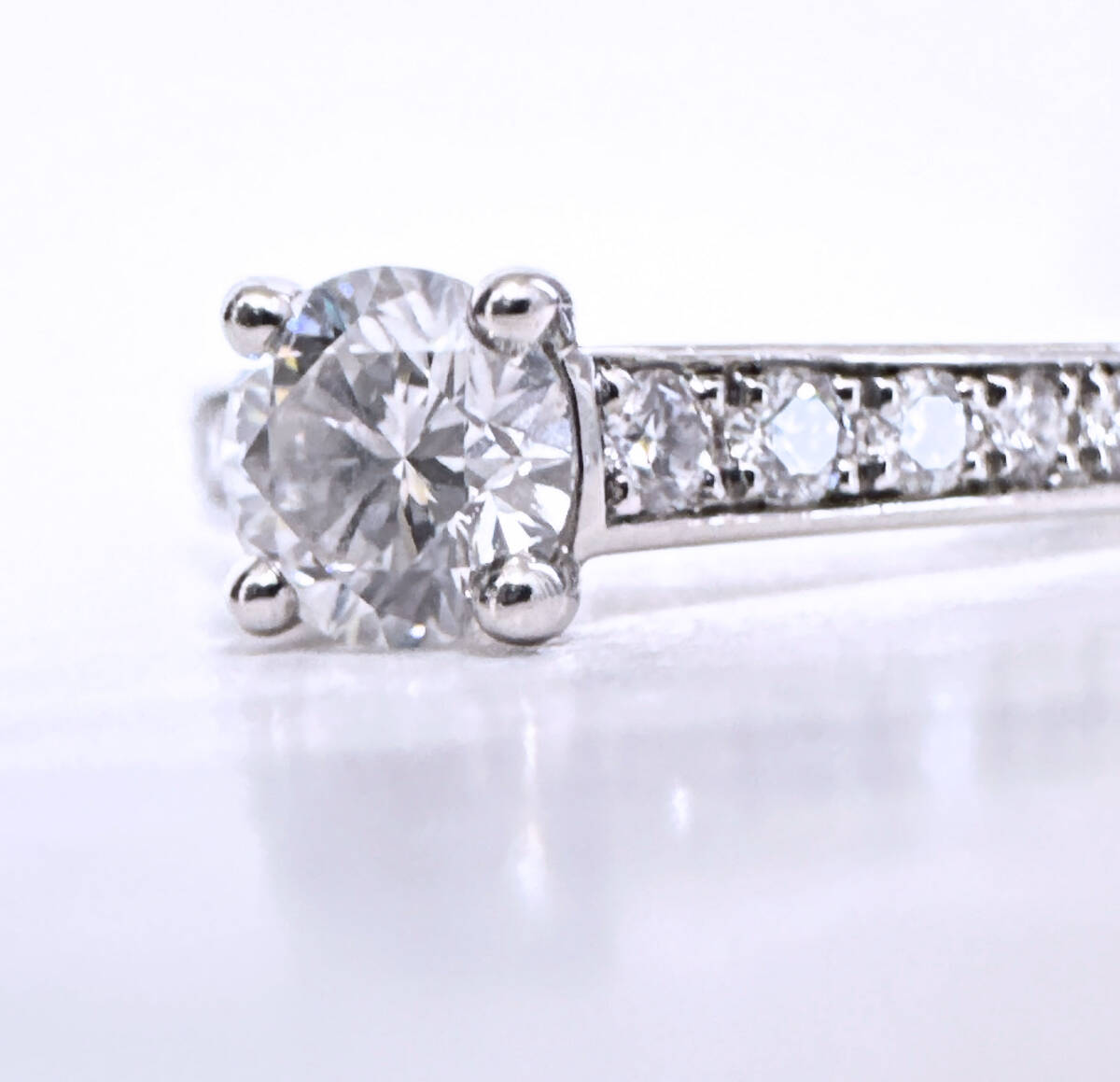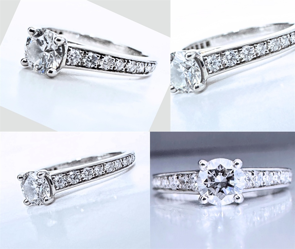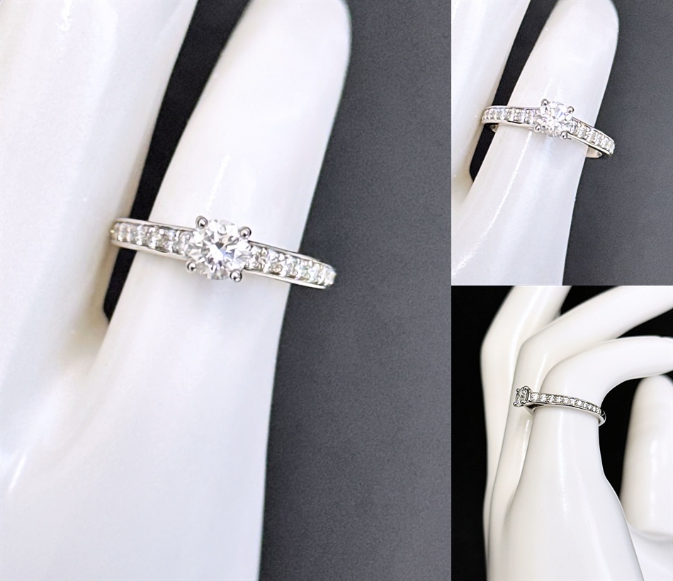 永遠に色褪せる事がないプラチナ素材に、その高品質なダイヤの輝きが存在感あり美しいです。