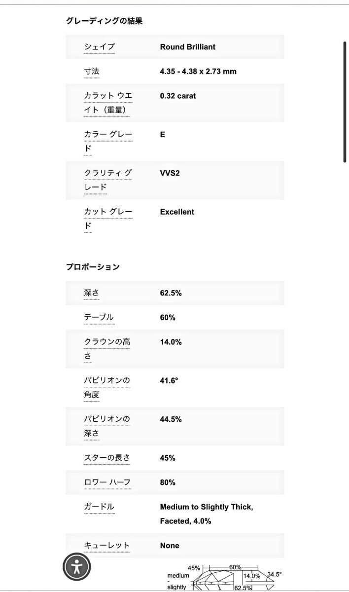 GIAでダイヤの鑑定結果が見れます。