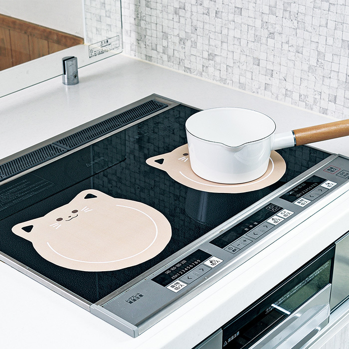 置くだけ、簡単! かわいい猫ちゃんがIHクッキングヒーター部分のコゲやキズを防ぎます。 表面には凸凹のエンボス加工を施しているので、置いた鍋がつきにくいです。 両面にシリコーン加工を施しているので、裏面はすべりにくく調理中も安心。 お手頃、お得な2枚入りです! ※IHクッキングヒーター専用:オールメタル対応のIHクッキングヒーター、ラジエントヒーター、シーズヒーターではご使用いただけません。 |
