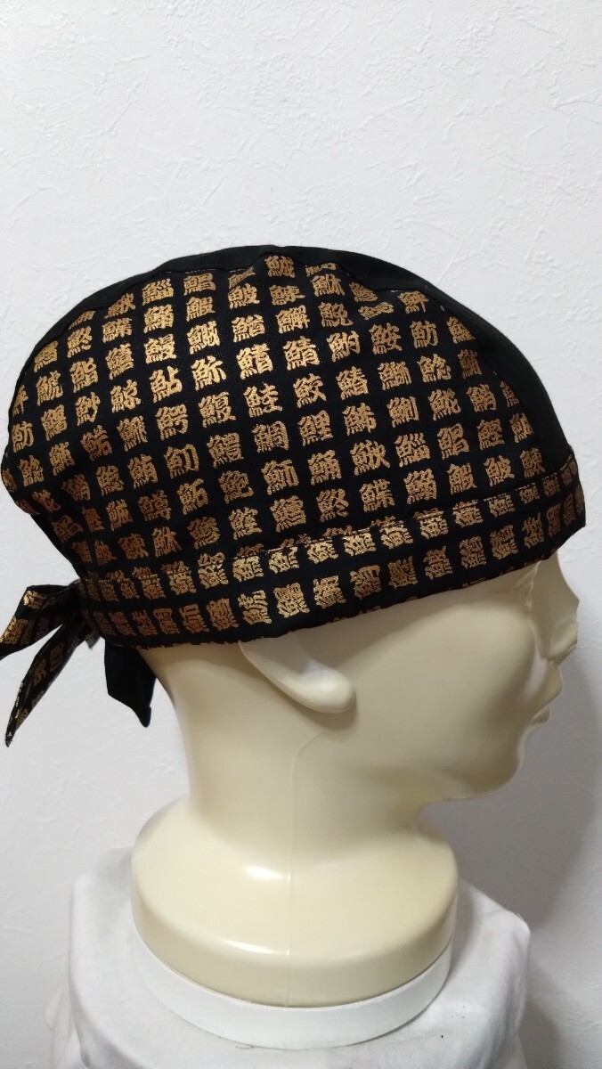 短★バンダナキャップ★ハンドメイド 和柄 漢字×無地 魚 黒