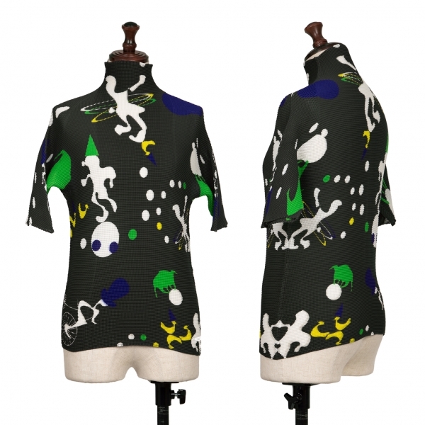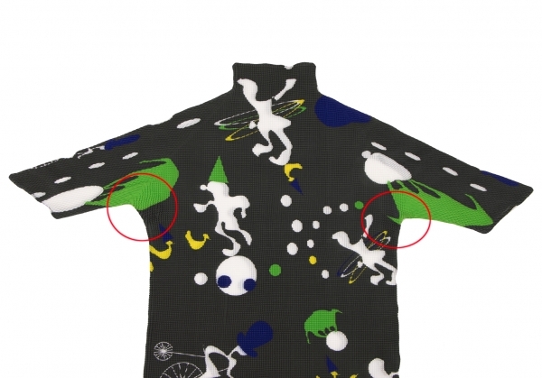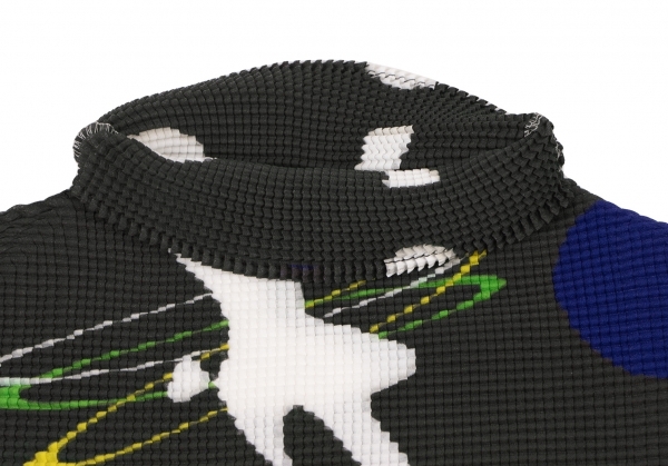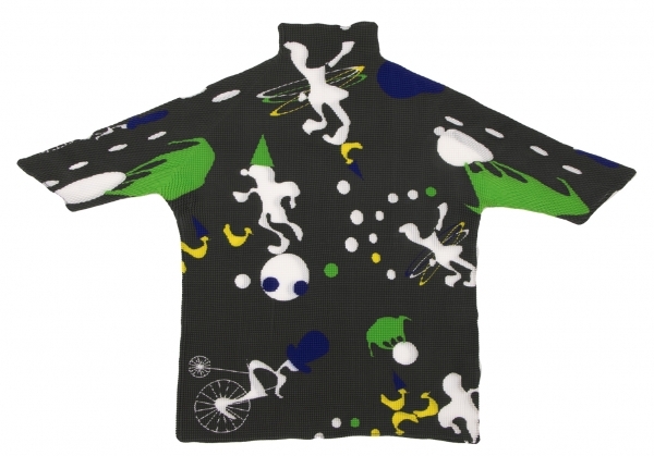 | イッセイミヤケISSEY MIYAKE PLEATS (T.) ストレッチプリーツサーカスプリントハイネックTシャツ チャコール他3 |