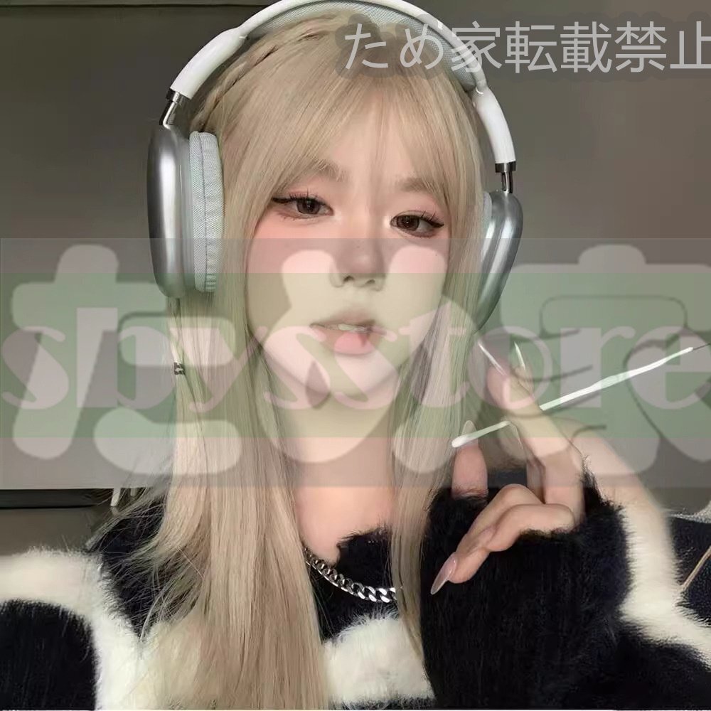 プラチナブロンドウィッグ 女性 ロングヘア ファッション 自然な浅色 全頭セット 日常用 擬似髪 全真人髪タイプ
