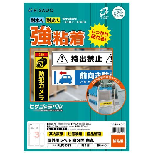 ○水・光・温度変化に強く破れにくい、屋外での使用に適したラベルです。